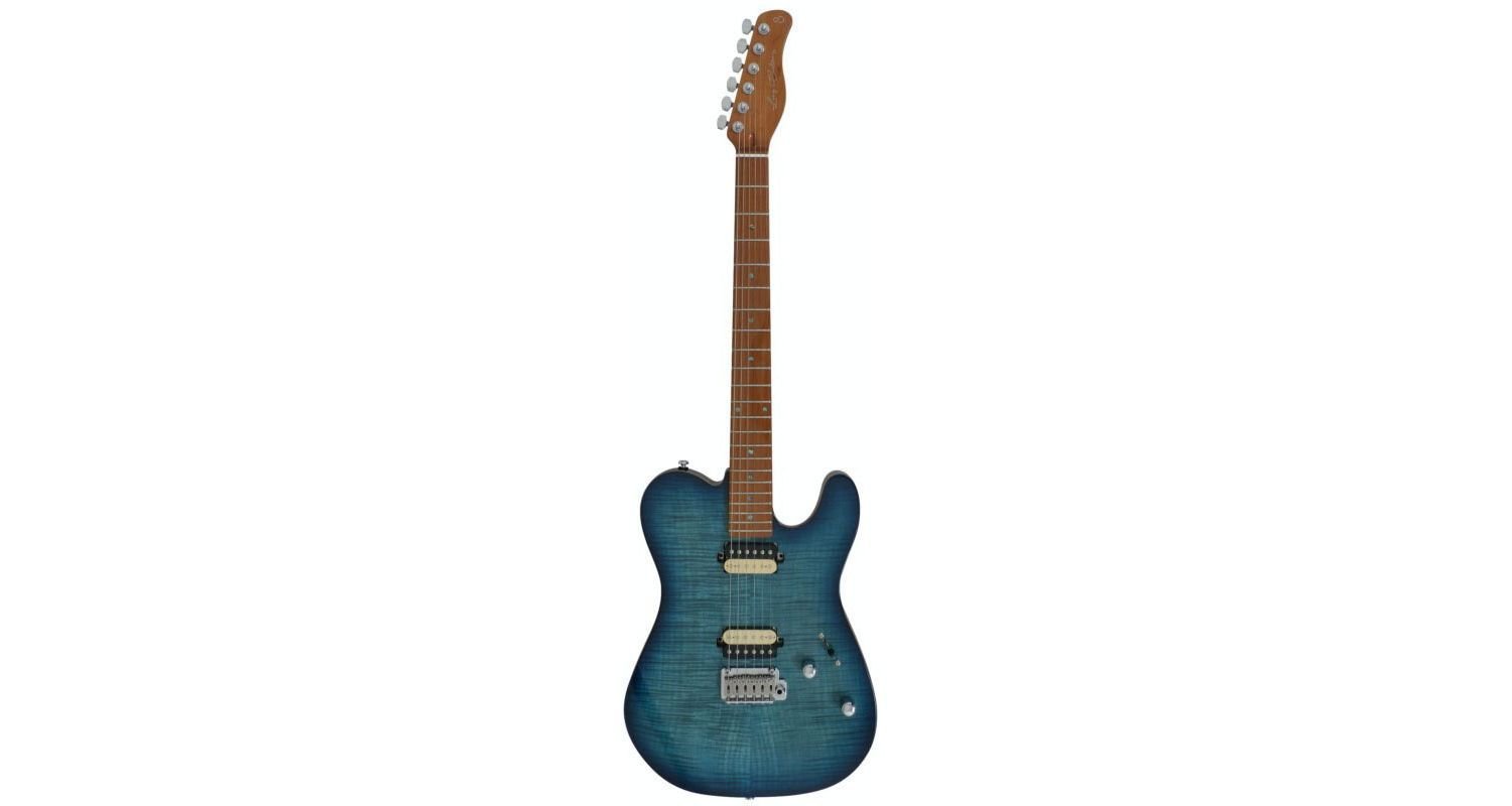 Guitare électrique SIRE LARRY CARLTON T7 couleur Transparent Blue. Les caractéristiques techniques incluent un corps en aulne, un manche en érable torréfié avec profil en C, un touche à rayon de 9,5" en érable torréfié avec 22 frettes Medium Jumbo, un pont Vintage T Bridge, des incrustations Dot en abalone, 2 micros simple bobinage Sire LC super-T, mécaniques Sire Premium Locking. Étui non inclus.
