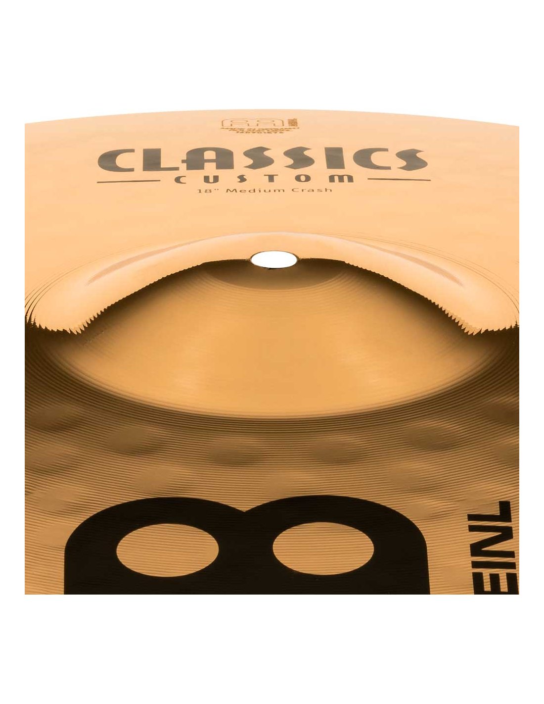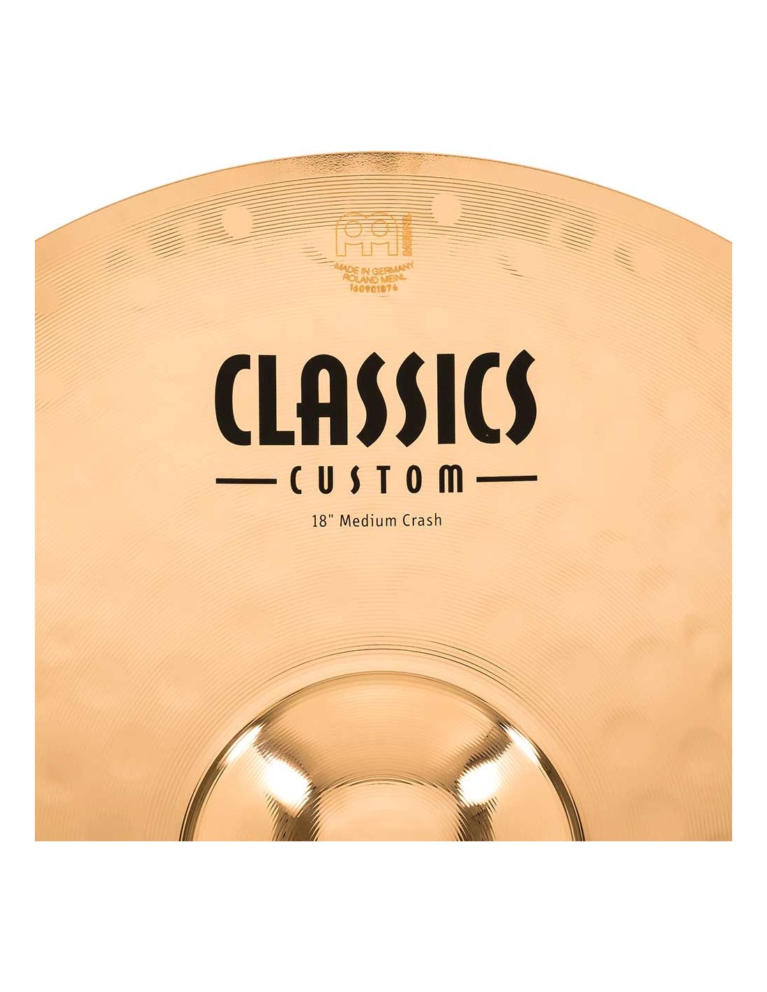 'Crash 18'' Medium, Série Classics Custom. Les cymbales de la série Classics Custom sont produites mécaniquement en Allemagne avec un alliage B10. Le processus implique diverses techniques, tant de pressage que de martelage informatisé. En plus de cela, elles reçoivent un vernis brillant qui leur donne une finition brillante spectaculaire.