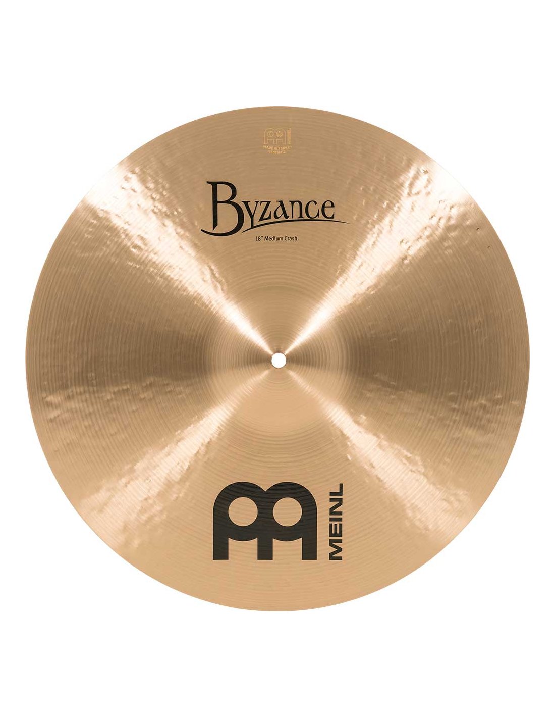 'Crash 18'' Medium, Série Byzance Traditionnelle. Les cymbales de la série Byzance Traditionnelle sont fabriquées artisanalement dans notre usine en Turquie par des spécialistes et en respectant la tradition tout au long du processus. Toutes les cymbales sont réalisées avec des disques en alliage de bronze B20. Plusieurs techniques sont impliquées dans le processus, tant le martelage que le tournage. La finition traditionnelle donne à la série le son classique de la cymbale turque que nous entendons depuis plus d'un siècle.