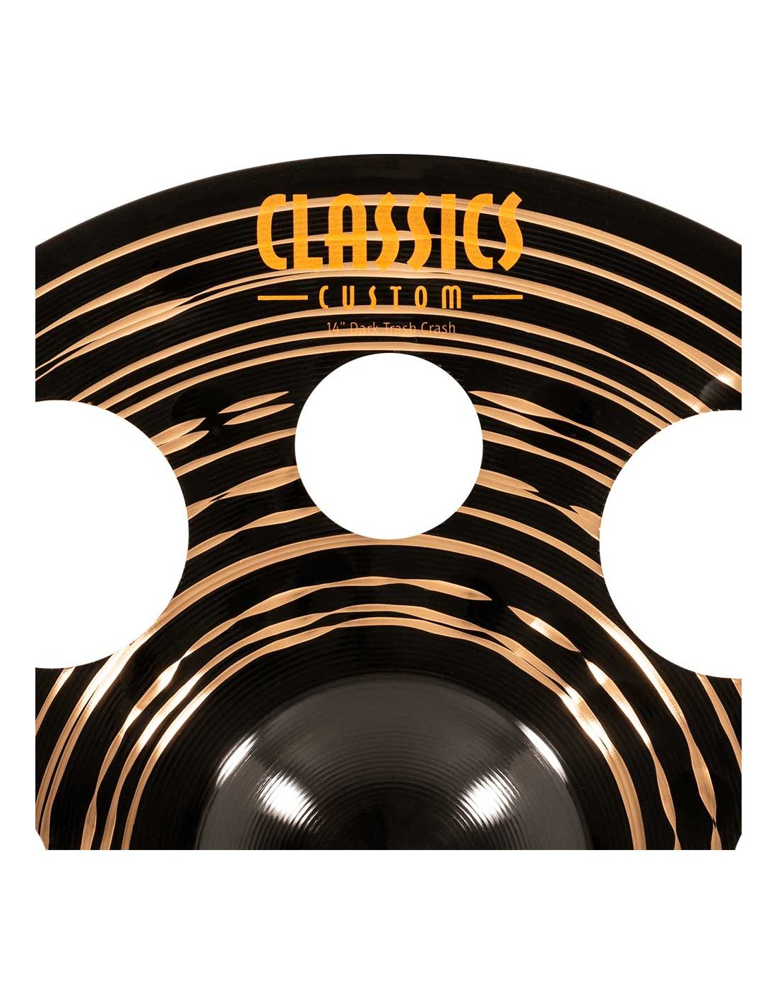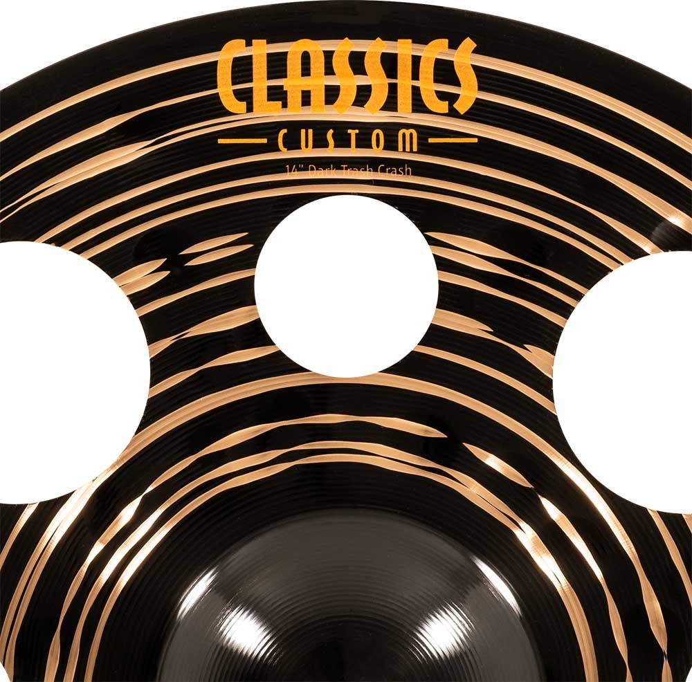 Trash Crash 14'' Serie Classics Custom Dark. Les cymbales de la série Classics Custom Dark sont produites mécaniquement en Allemagne avec un alliage B10. Le processus implique diverses techniques, tant de pressage que de martelage informatisé. En plus de cela, elles ont une finition noire brillante qui leur donne un aspect spectaculaire et un son particulier.