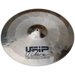 UFIP VIBRA 17" CRASH. Plat de crash professionnel de 17 pouces en métal B20, avec une finition brillante sur le bord et satinée au centre et double martelage. Il se caractérise par un son explosif avec une attaque immédiate et un sustain moyen. Les cymbales UFIP Vibra sont particulièrement adaptées pour le Pop, la Fusion et le Rock.