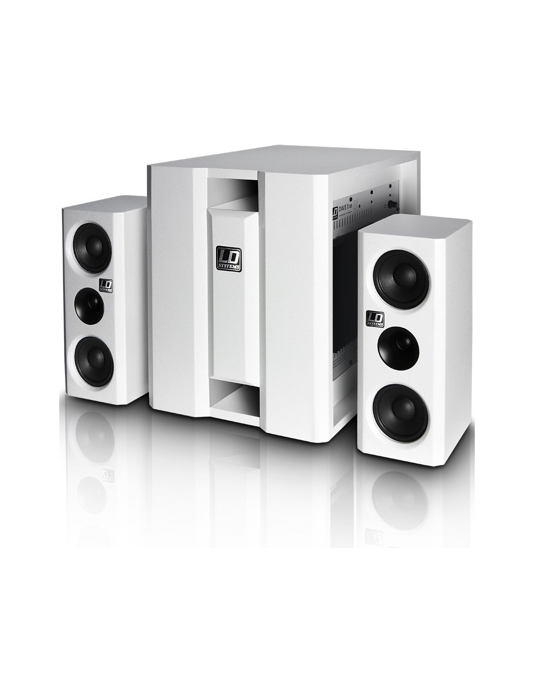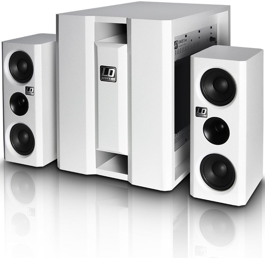 Le DAVE8XS WHITE de LD Systems est un système composé d'un subwoofer avec un woofer de 8” de 150 Watt RMS et de 2 satellites avec un haut-parleur de 4” et un tweeter de 1” de 100 Watt, amplification Classe A/B, réponse en fréquence entre 45Hz et 19kHz, SPL maximum de 117dB, interrupteur principal (on/off), inversion de phase du subwoofer, contrôle du volume et du volume du subwoofer. Le DAVE8XS WHITE dispose de 2 entrées combo XLR/Jack de 6,3 mm et 1 entrée RCA.