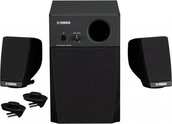 YAMAHA GNSMS01 est un système de diffusion 2.1, spécifique pour une utilisation avec les Workstations Yamaha Genos, qui se compose de 2 satellites de 20W et d'un subwoofer de 40W. Les caractéristiques techniques incluent un Woofer de 6,5" avec un tweeter de 0,8" de 40W, des satellites avec un diffuseur Midrange de 3" avec un blindage magnétique de 20W chacun