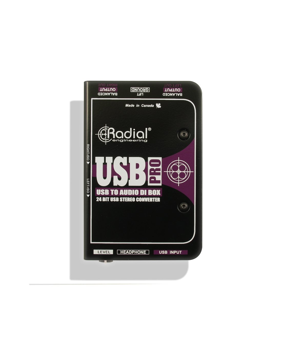 Radial USB-Pro est un convertisseur audio numérique stéréo (DAC) haute résolution et une direct box conçu pour se connecter à n'importe quel système informatique et convertir sans problème l'audio du numérique à l'analogique.
