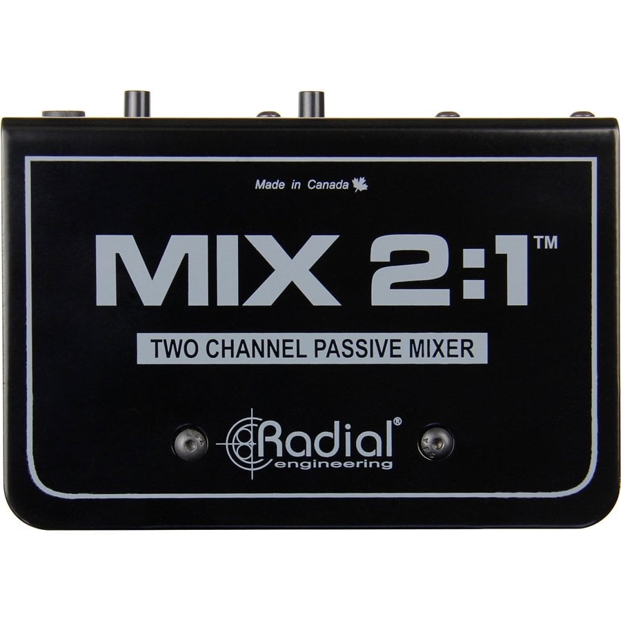 MIX 2:1 est un mélangeur simple mais très utile qui additionne passivement deux canaux audio en un. Cela permet d'additionner facilement les sorties stéréo d'une console, d'une interface d'enregistrement ou d'un appareil de lecture portable en mono, ou de mixer deux signaux ensemble et d'équilibrer leurs niveaux d'entrée.