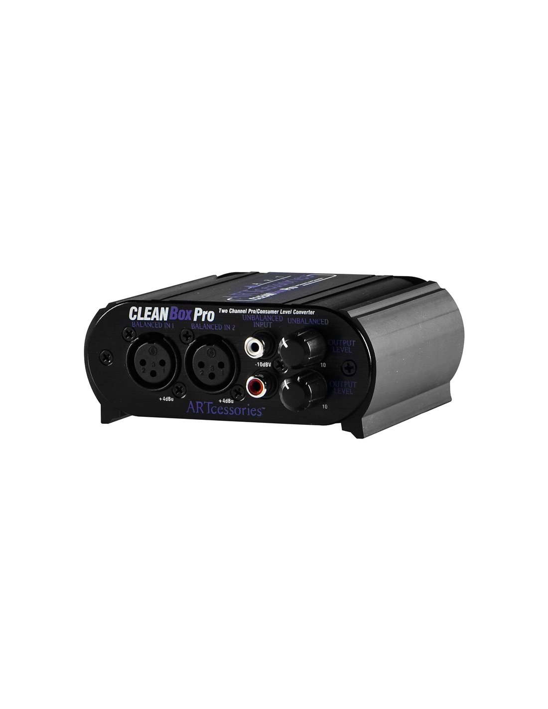 ART CLEANBOX PRO est un convertisseur de niveau pro/consumer à double canal. Les caractéristiques techniques incluent 2 canaux de conversion de niveau de déséquilibré à équilibré et 2 canaux de conversion de niveau d'équilibré à déséquilibré dans une unité robuste, compacte et portable. Les lignes équilibrées offrent une plus grande immunité aux interférences électriques externes, comme le bourdonnement. Étant donné qu'un système équilibré minimise le bruit induit, c'est la méthode préférée pour connecter des appareils audio, en particulier lors de l'utilisation de câbles de grande longueur. Connecteurs XLR pour entrées et sorties équilibrées. Connecteurs RCA et mini-jack stéréo 1/8 pour entrées et sorties déséquilibrées. Contrôle de niveau des sorties déséquilibrées. Contrôle de niveau des sorties équilibrées. Châssis robuste en aluminium extrudé. Interrupteur On/Off éclairé. Équipé d'un adaptateur externe pour fonctionnement avec alimentation AC. Circuits à faible bruit et à faible distorsion.