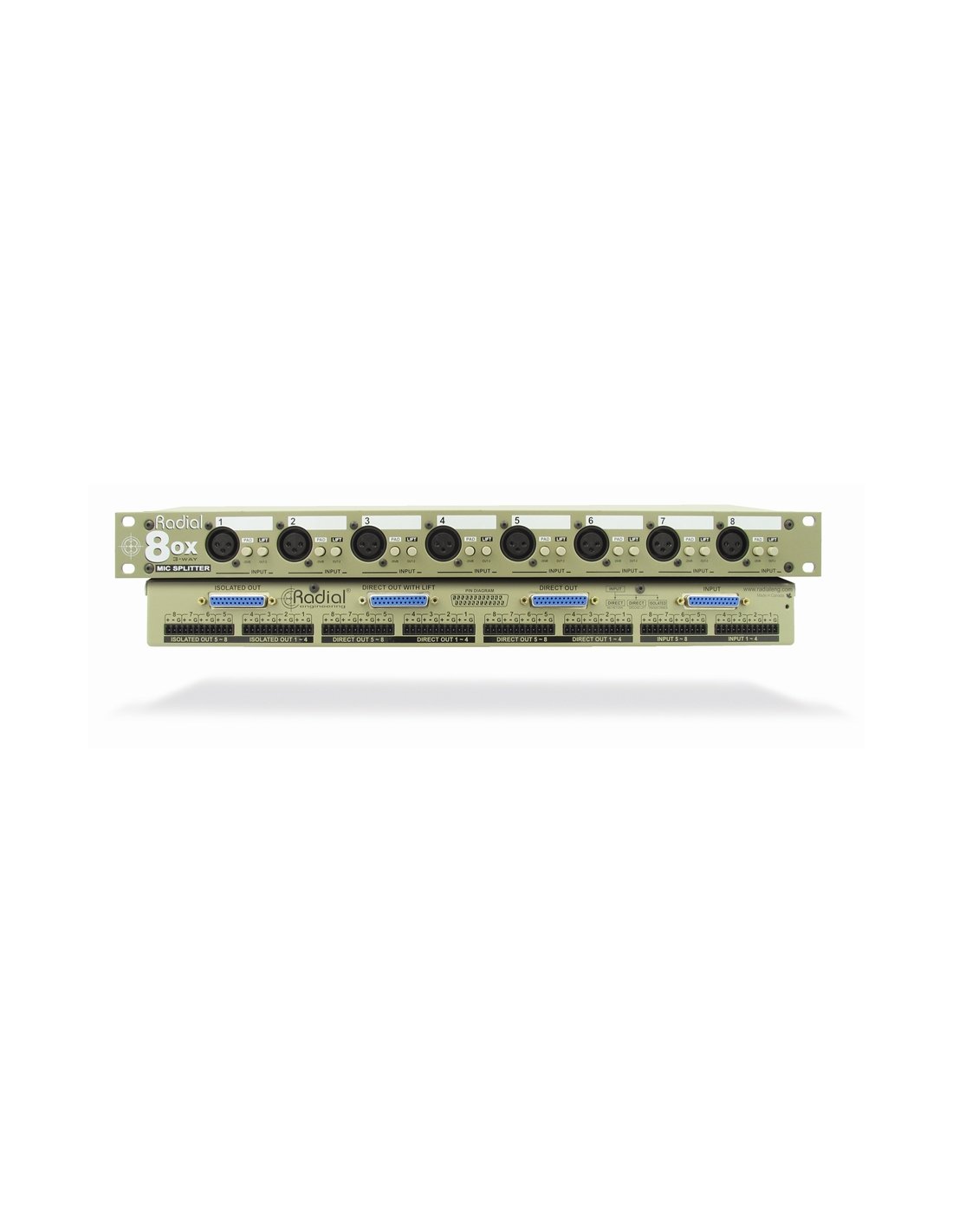 Radial OX8 est un dispositif audio professionnel, également à l'aise sur une scène en direct que dans un studio de diffusion. Il est capable de diviser (Split) le signal de 8 microphones vers des destinations multiples simultanément, le tout sans bruit ni distorsion, éliminant les bruits typiques des boucles de masse comme Hum ou Buzz (ronronnements). Chaque canal est configuré avec une entrée équilibrée, un "Direct Out" qui sert également de chemin de retour pour l'alimentation Phantom 48V, un "Thru-Put" avec sélecteur "Ground Lift", et une sortie complètement isolée par le transformateur. OX8 peut être commandé avec les célèbres transformateurs Jensen JT-MB-CPC, ou avec les Eclipse ET-MS10 comme alternative à un prix plus abordable.
