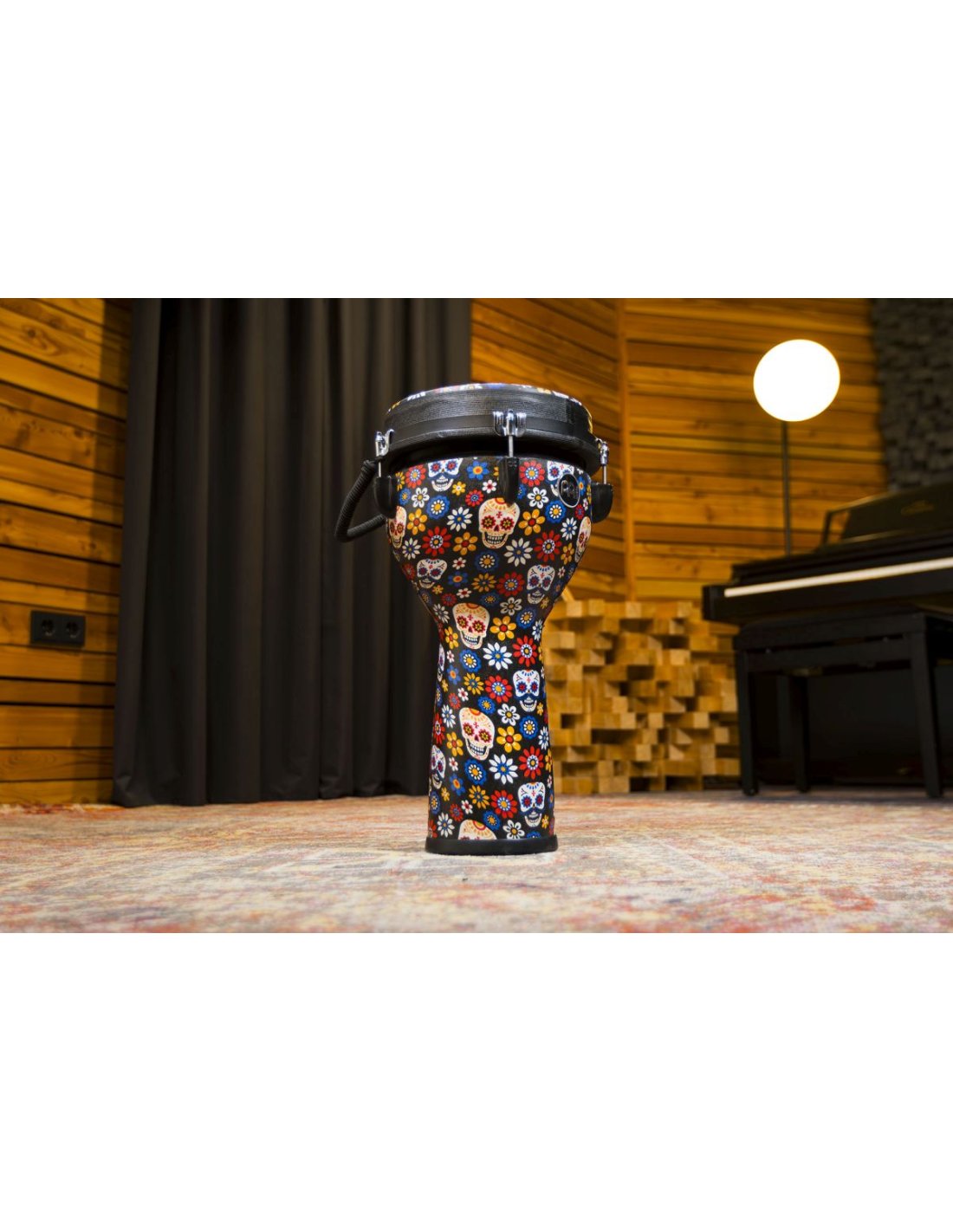 'Incentré sur un ton bas profond qui résonne librement, le Meinl Jumbo Djembe offre un son puissant avec des matériaux pour toutes les saisons. Disponibles dans une variété de diamètres, ces djembés produisent une gamme de tons remarquablement large, des basses en forte expansion aux aigus percutants. La peau et le fût 100 % synthétiques ne perdent pas leur accordage avec les changements de température ou d'humidité et se combinent pour offrir des slap nets et ciblés ainsi qu'une basse robuste. La structure légère rend ce djembe un compagnon de voyage idéal. Un système d'accordage mécanique facile à utiliser fixé à un matériel résistant pour garantir un son cohérent et fiable. Également à l'aise sur scène ou en studio, le Jumbo Djembe est parfaitement adapté à une utilisation dans des lieux de culte et dans des salles de classe.Caractéristiques :Mesure jumbo pour basses profondesPeau et fût 100 % synthétiquesSystème d'accordage mécaniqueConstruction légèreDiamètre 10'', Hauteur 20,5Ó'