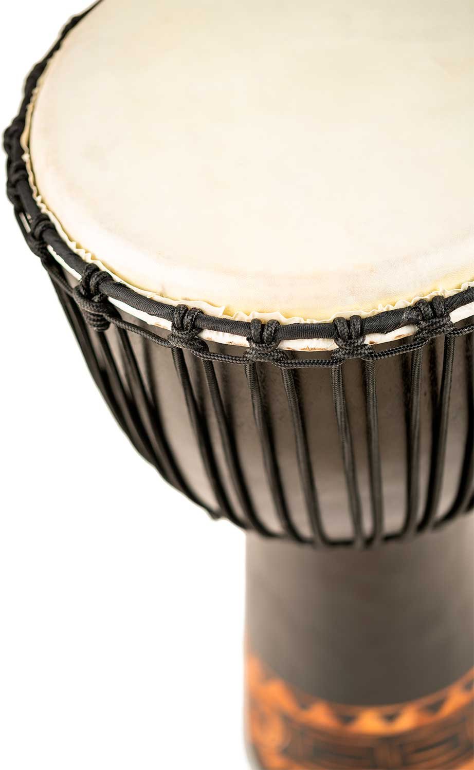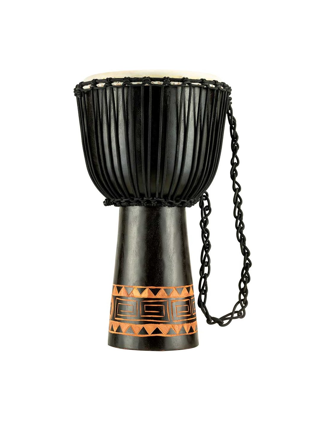 'Djembe en bois de 13''''. Équipé de têtes en cuir de chèvre sélectionnées à la main et de cordes en nylon pour un accordage optimal. Les magnifiques djembés de la série Meinl Headliner se distinguent par leur graphisme traditionnel et exotique. 100% méticuleusement fabriqués à la main selon les normes de qualité élevées de Meinl. .