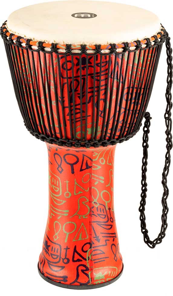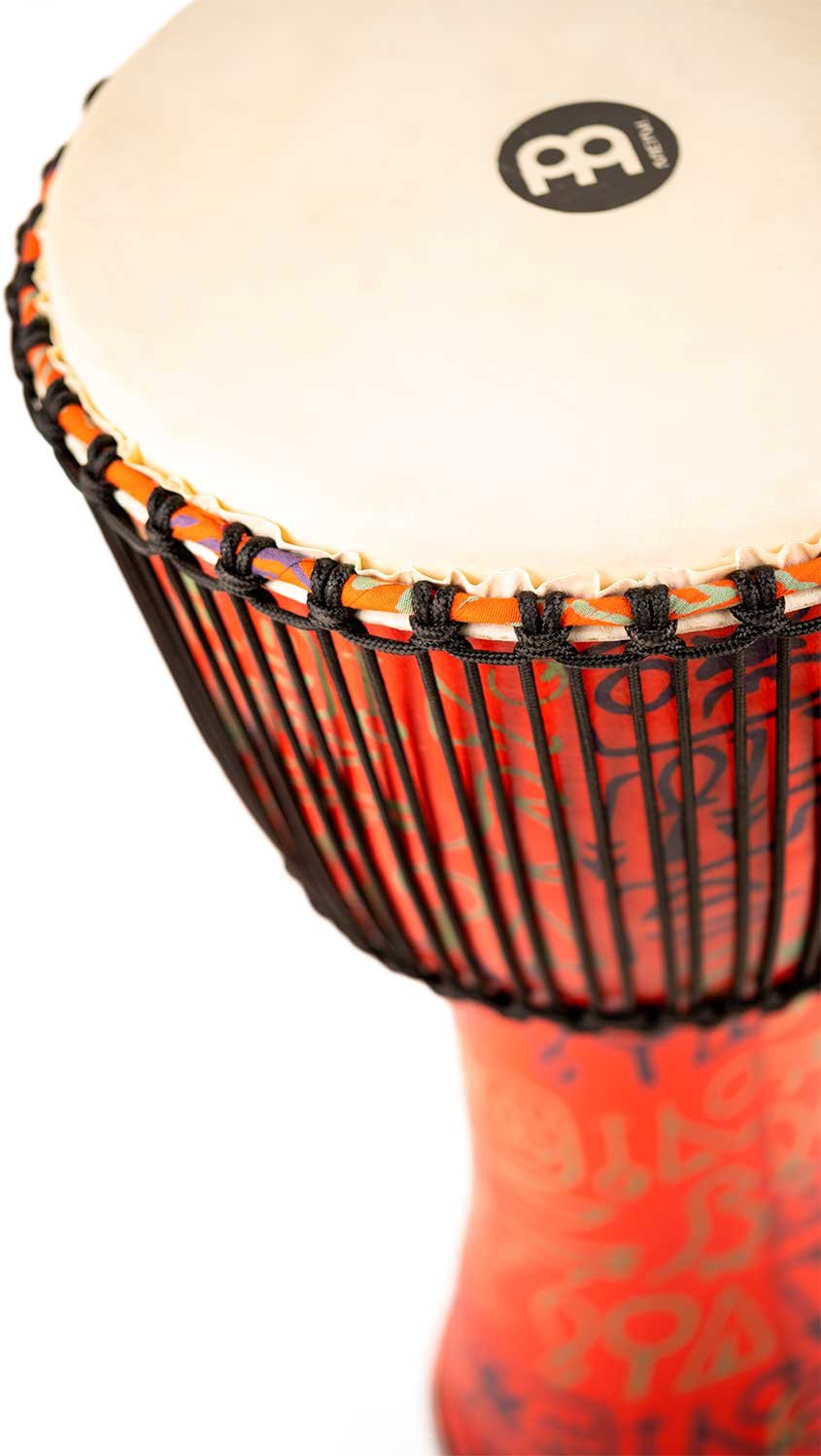 'Djembe de 14'. Les djembés de la série Travel de Meinl sont conçus pour être transportés partout. Le fût est en plastique, rendant l'instrument extrêmement léger et robuste. L'utilisation du plastique a donné aux développeurs du produit Meinl l'opportunité d'économiser 20 % de poids par rapport au modèle en fibre de verre. De plus, ce matériau léger vibre facilement, produisant un son avec des aigus vraiment vibrants et des basses incroyablement profondes.
