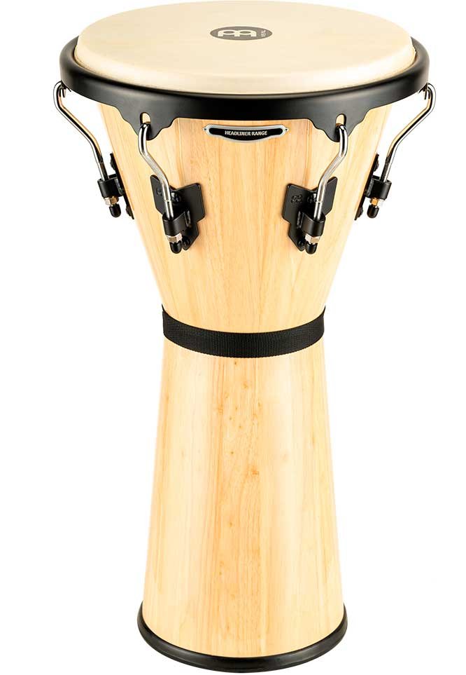 'Djembe en bois 12 1/2''. Les Djembes Headliner produisent un son classique avec des basses profondes et des aigus explosifs. Le design des fûts et l'assemblage des têtes en cuir de chèvre sélectionnées à la main. Cette forme rend incroyablement facile et confortable de jouer de l'instrument coincé entre les genoux.