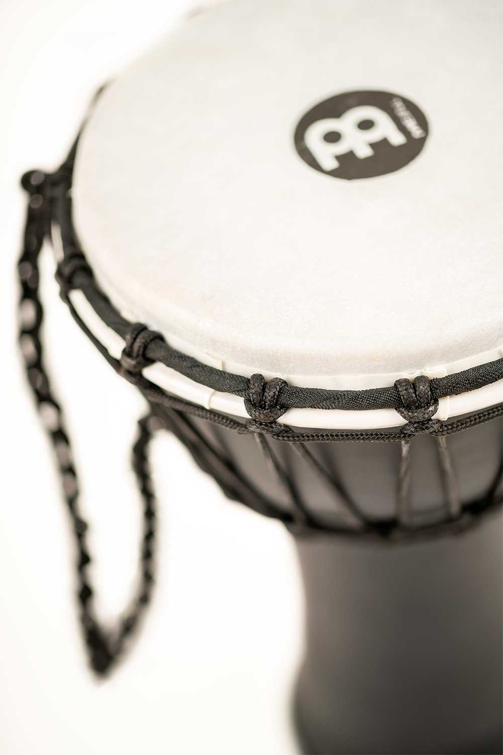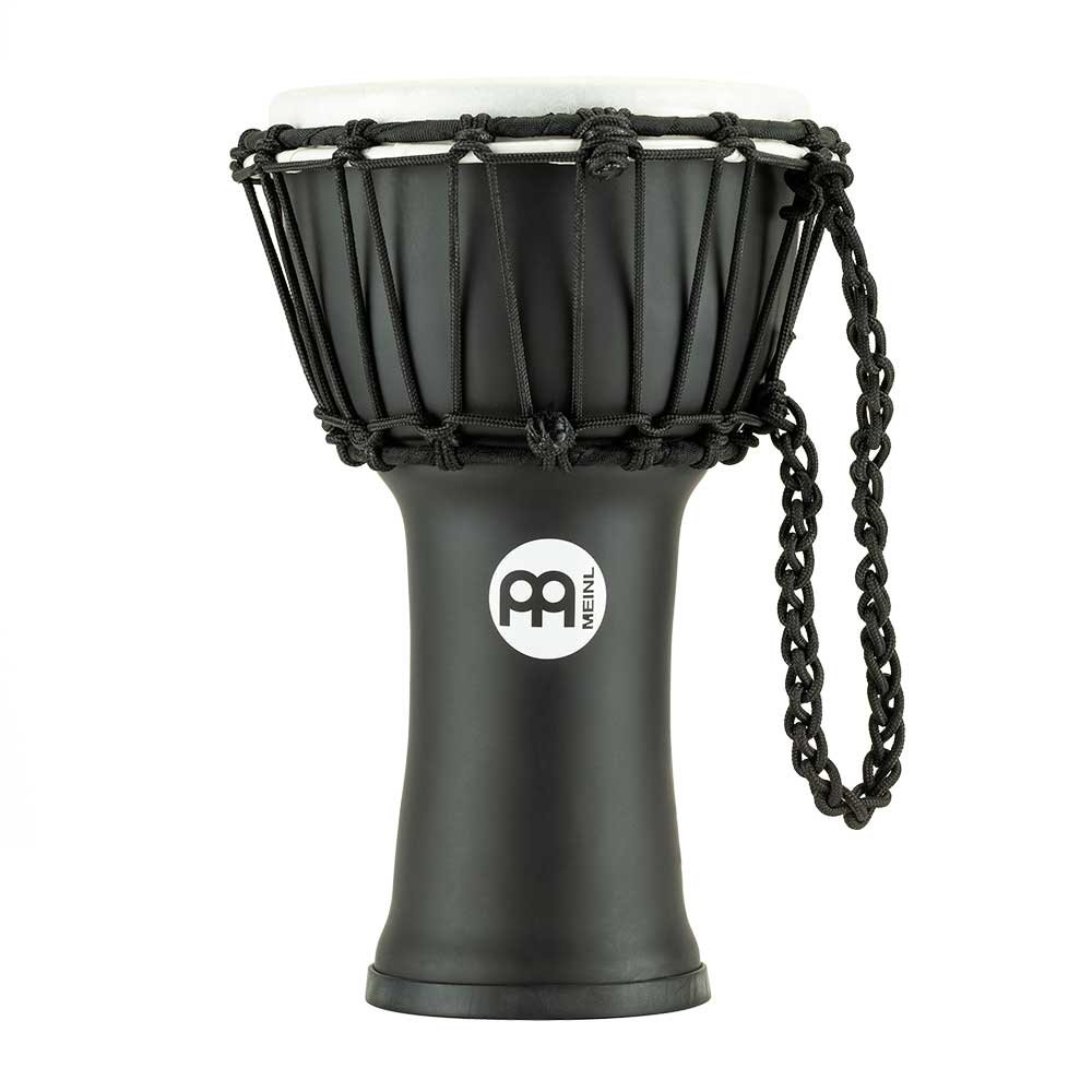 'Mini Djembe JRD-BK. Le Meinl Junior Djembe de seulement 7'' est l'instrument parfait à emporter partout. Ce Djembe compact offre un grand son et un excellent ton, idéal pour des réunions entre amis ou des sessions d'enseignement du rythme. Son corps et sa peau synthétiques et légers à 100% le rendent parfait pour jouer en extérieur. Ses 14 cordes pré-tendues maintiennent mieux l'accordage.