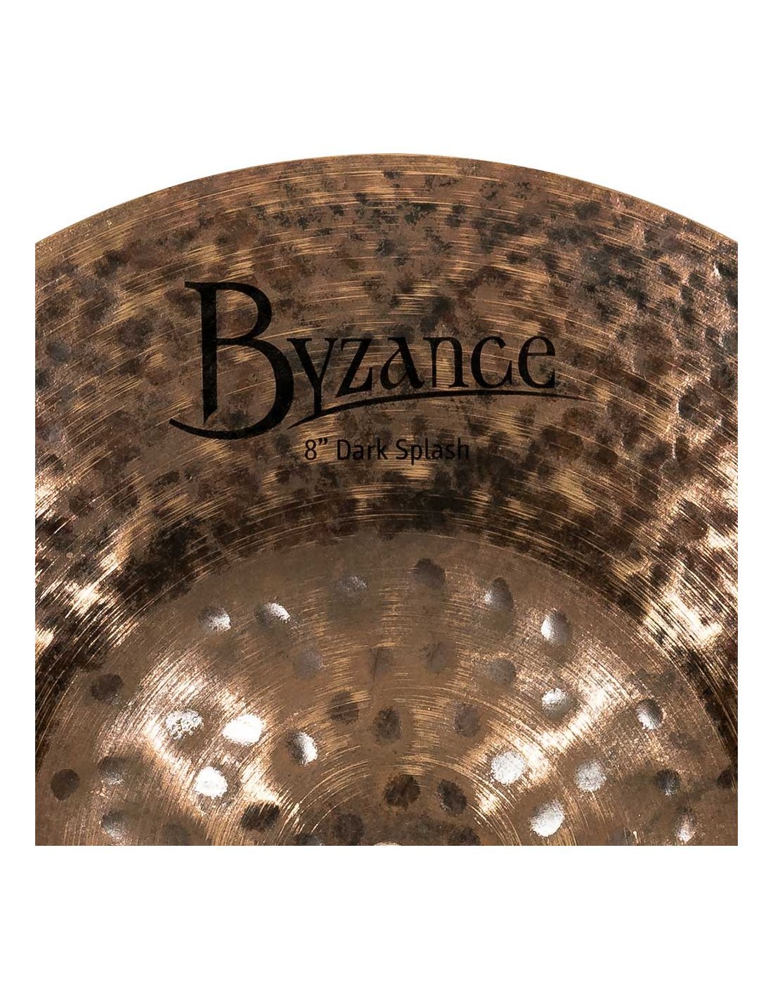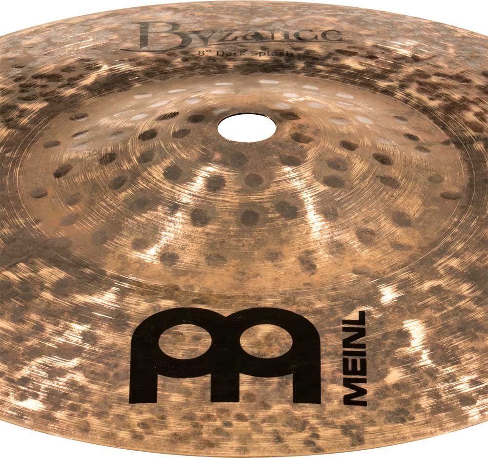 'Splash 8'', Série Byzance Dark. Les cymbales de la série Byzance Dark sont fabriquées artisanalement dans notre usine en Turquie par des spécialistes et en respectant la tradition tout au long du processus. Toutes les cymbales sont réalisées avec des disques en alliage de bronze B20. Différentes techniques sont impliquées dans le processus, tant le martelage que le tournage. La finition Dark unturned donne à chaque cymbale un son défini avec peu de sustain. Vraiment agréable dans le mix.