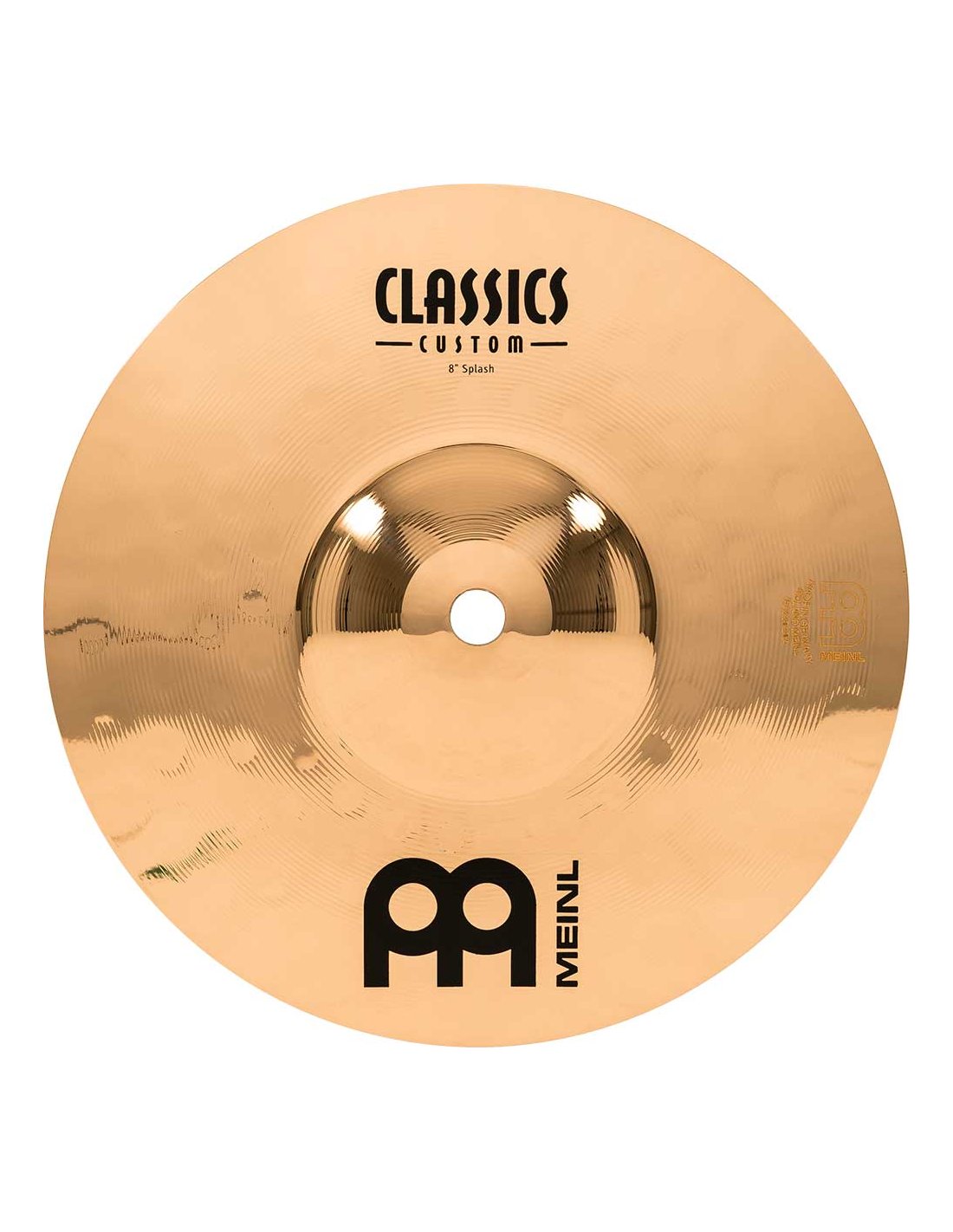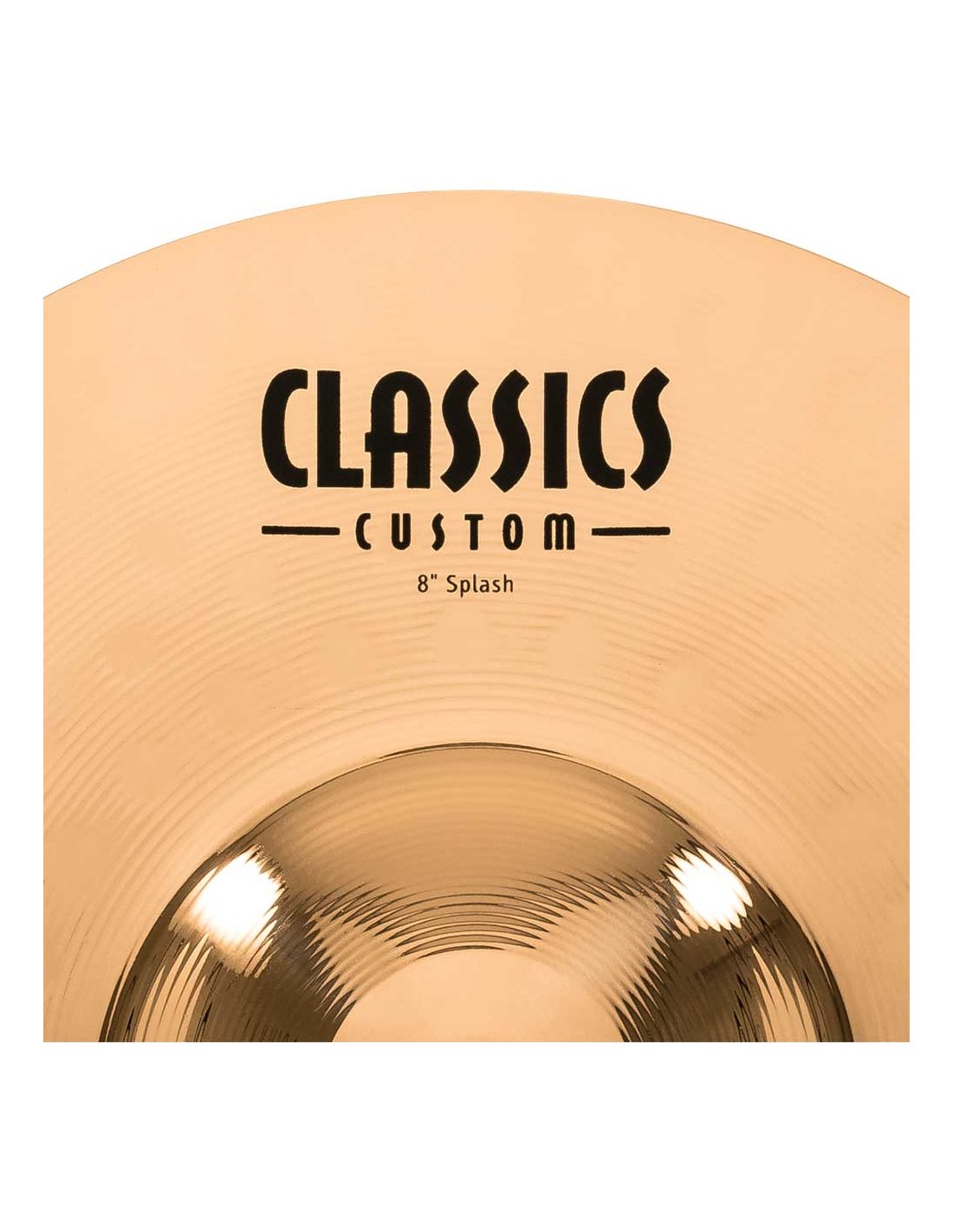 'Splash 8'' Série Classics Custom. Les cymbales de la série Classics Custom sont produites mécaniquement en Allemagne à partir d'un alliage B10. Le processus implique diverses techniques, tant de pressage que de martelage informatisé. En plus de cela, elles reçoivent un vernis brillant qui leur donne une finition brillante spectaculaire.