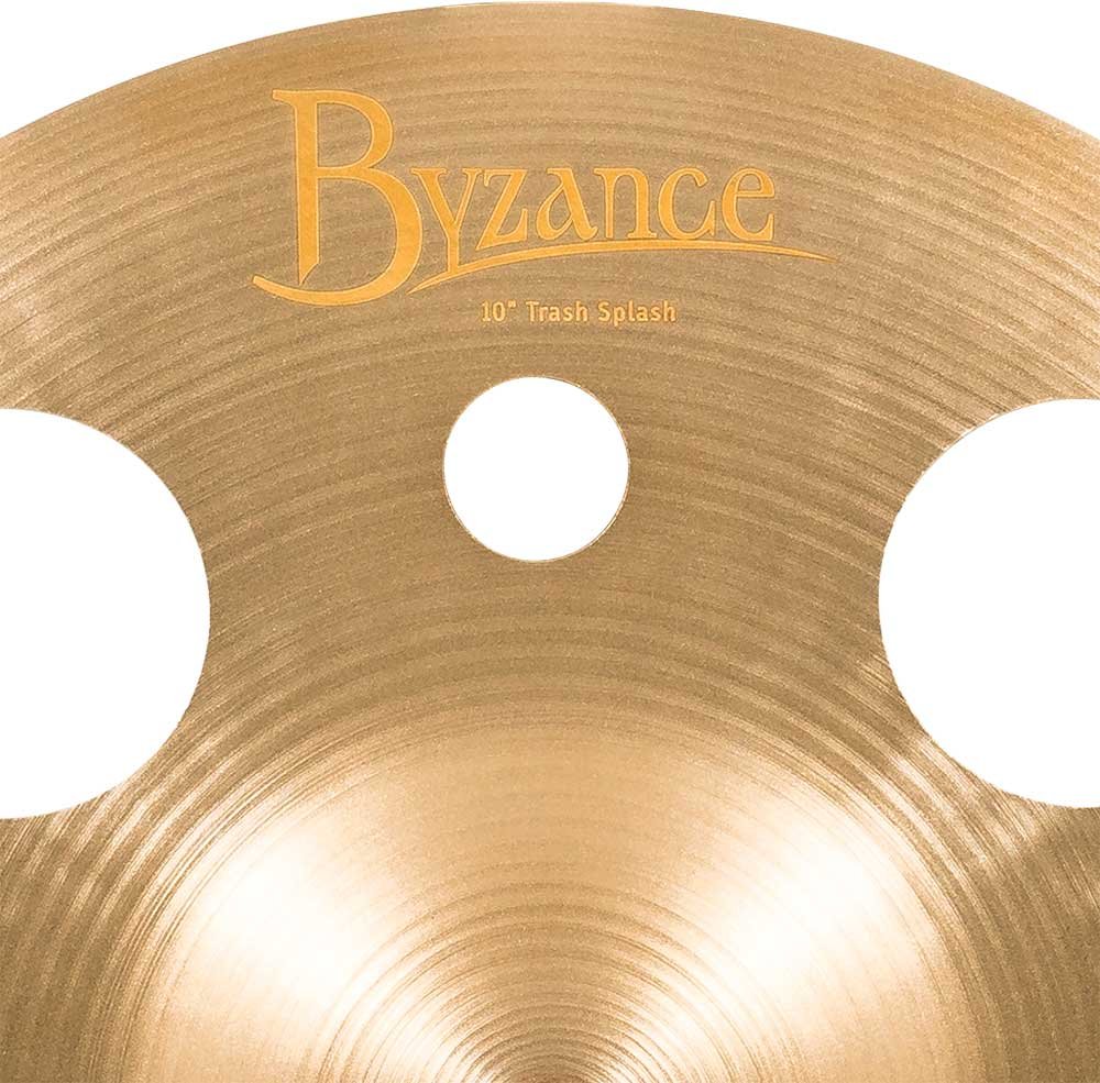 'Splash 10'' Trash, Série Vintage Byzance. Les cymbales de la série Byzance Vintage sont fabriquées artisanalement dans notre usine en Turquie par des spécialistes et en respectant la tradition tout au long du processus. Toutes les cymbales sont réalisées avec des disques en alliage de bronze B20. Différentes techniques sont impliquées dans le processus, tant le martelage que le tournage. La finition Vintage donne à chaque cymbale un son moyen qui rappelle des cymbales beaucoup plus anciennes. Vraiment beau dans le mix.