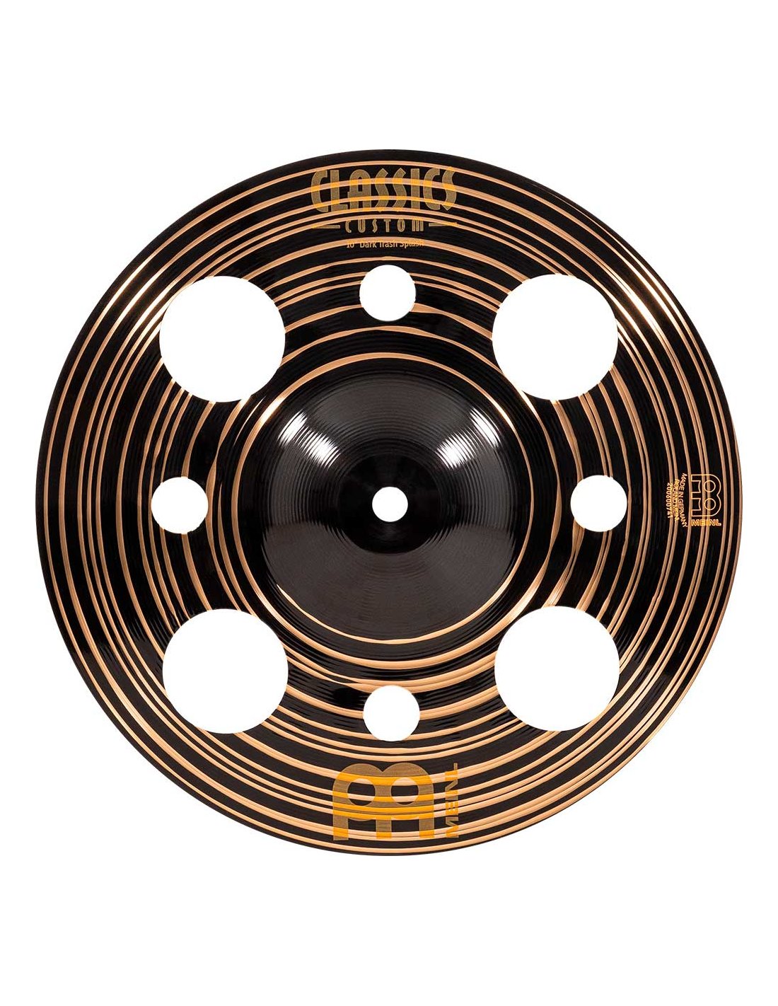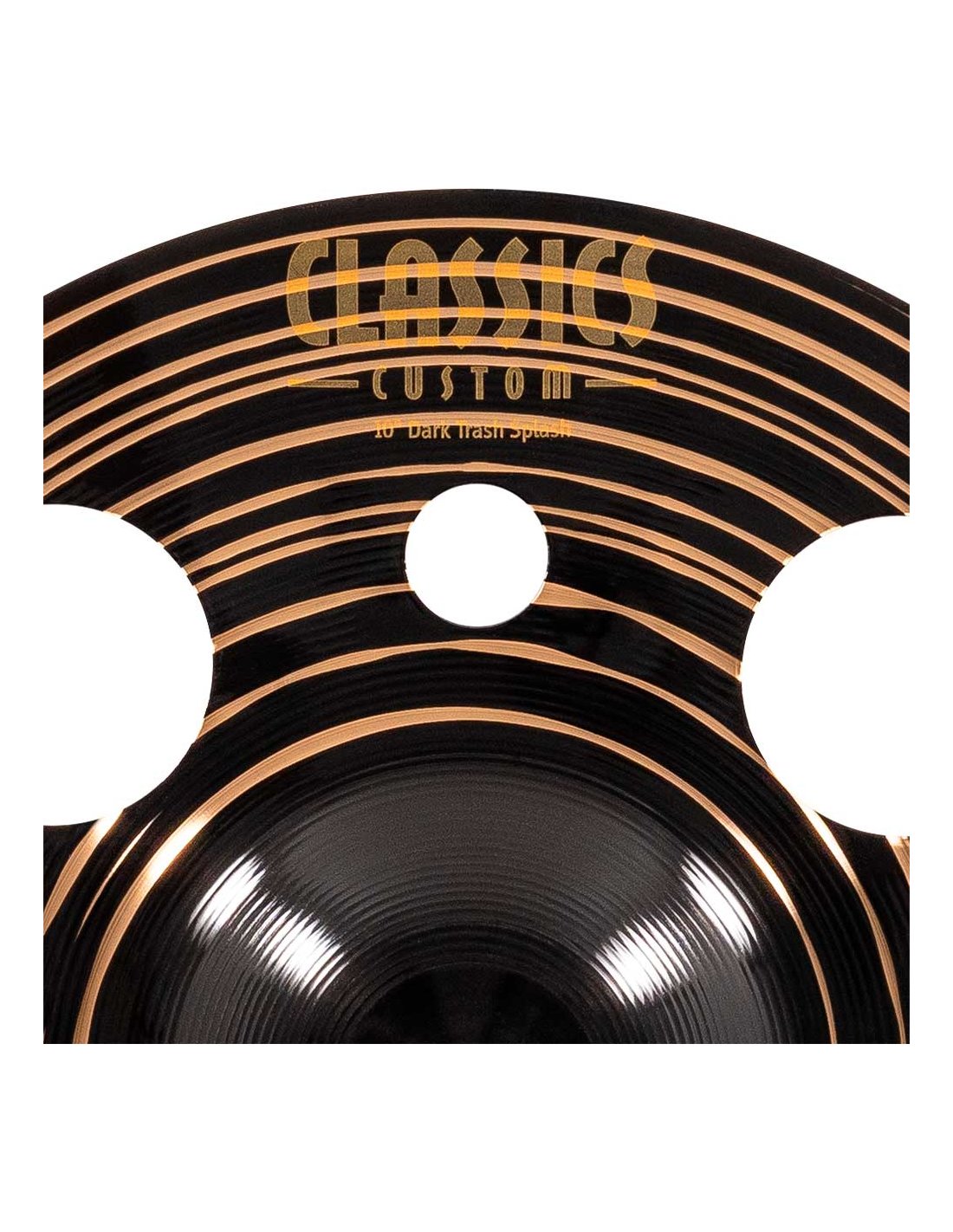 'Trash Splash 10'' Série Classics Custom Extreme Metal. Les cymbales de la série Classics Custom Extreme Metal sont fabriquées mécaniquement en Allemagne avec un alliage B10 et ont un poids légèrement supérieur à celui des cymbales Classics Custom, ce qui leur confère une puissance vraiment grande. Le processus implique diverses techniques, tant de pressage que de martelage informatisé. En outre, elles reçoivent un vernis brillant qui leur donne une finition brillante spectaculaire.