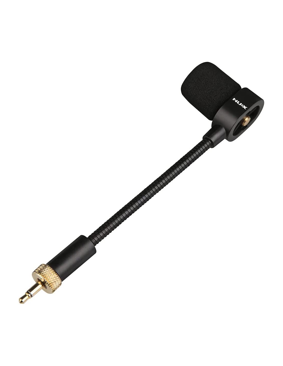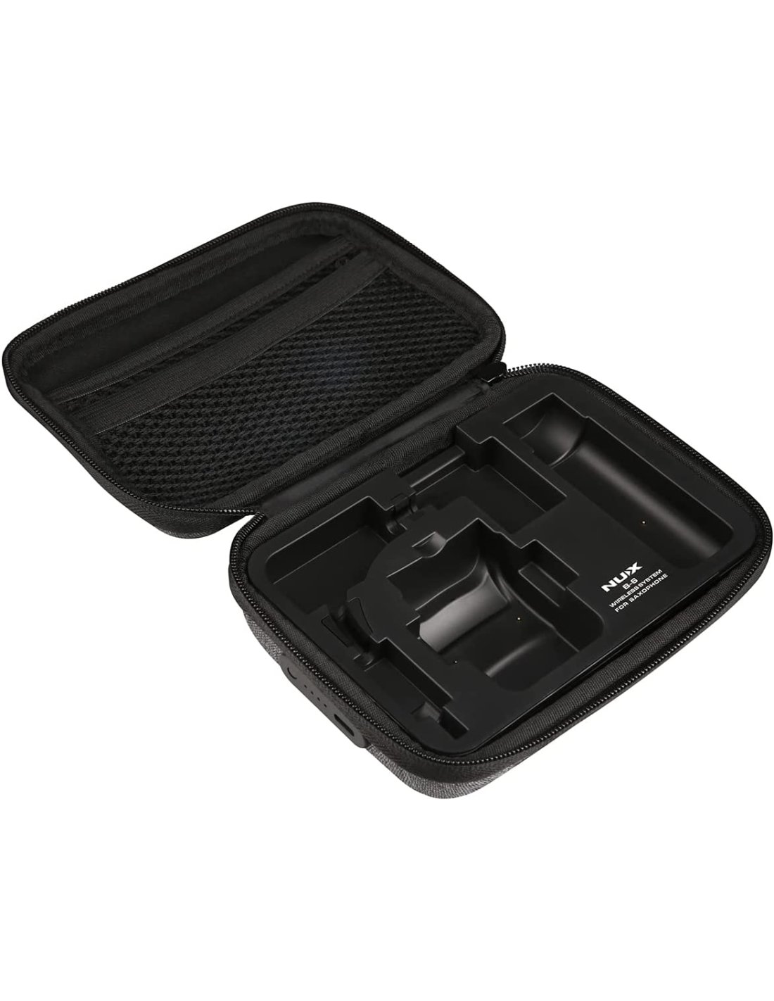 NUX B-6 SANS FIL POUR SAX. Système de microfonie sans fil pour saxophone composé d'un récepteur à capsule à condensateur Electret haute résolution 24 bits/44,1 kHz avec une réponse en fréquence de 20Hz - 20kHz. L'émetteur est équipé d'un système de verrouillage recouvert de caoutchouc pour être fixé à la cloche, dispose de 3 modes d'égalisation optimaux spécifiques pour saxophone soprano, alto et ténor activables via le bouton Power/Scene. Le set est également fourni avec un étui-chargeur pour recharger simultanément l'émetteur et le récepteur, offrant une autonomie allant jusqu'à 15 heures.