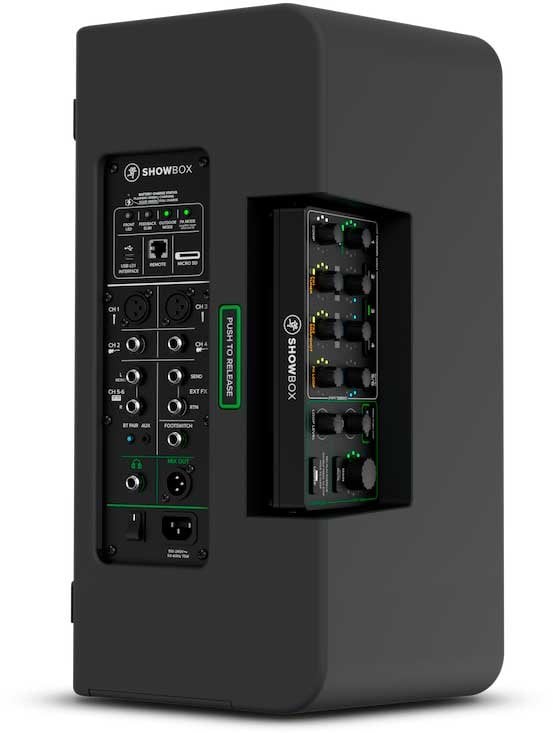 Avec Mackie ShowBox, le système multifonction alimenté par batterie pour performances, qui rend facile d'obtenir un excellent son en direct partout, la configuration se fait en quelques secondes. ShowBox offre toutes les entrées audio pour concerts solo et petites bandes, remplaçant les amplificateurs pour instruments et les haut-parleurs PA tout en ajoutant des effets que tu peux modifier depuis le pied de micro avec le contrôleur mix amovible.