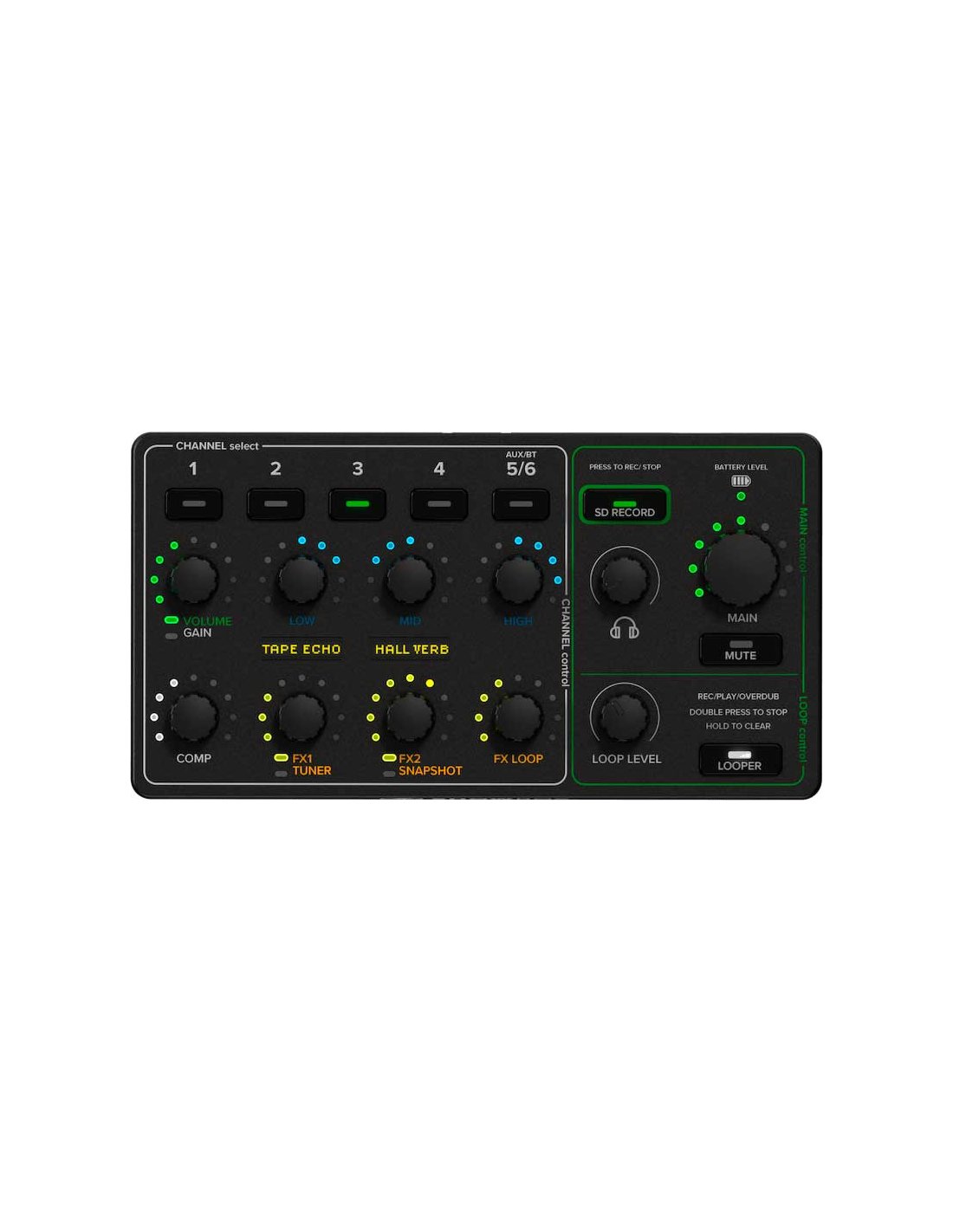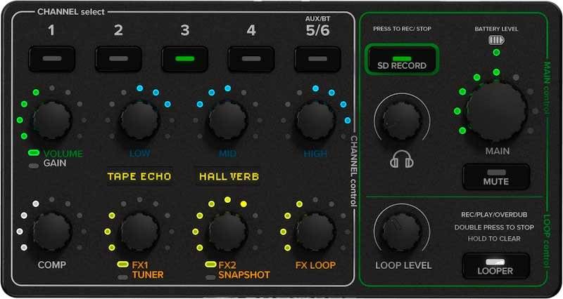 Ajoute deux niveaux d'effets dynamiques à voix et instruments, y compris des effets essentiels pour guitare comme fuzz, overdrive, modèle à lampes, amplificateur acoustique et tremolo, ainsi qu'une variété d'effets de modulation et de réverbération.