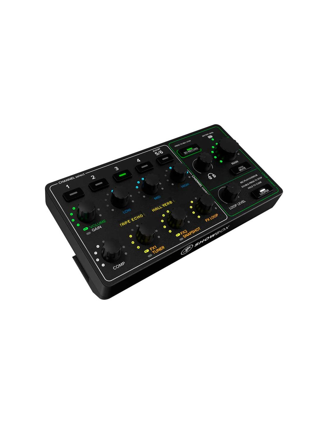 Mackie ShowBox te connecte avec ton public, où que tu sois. Simplifie ta configuration live en ajoutant la possibilité d'enregistrer avec une carte SD, de faire du streaming avec USB-C et d'utiliser Bluetooth® pour jouer des pistes d'accompagnement (ou de la musique pendant une pause si nécessaire).