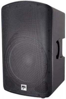MP AUDIO BP19-15A37. Enceinte active 2 voies avec 800W de puissance en classe D et technologie Bluetooth. Les caractéristiques techniques incluent un woofer de 15", un tweeter en titane de 3,5", DSP intégré avec 4 modes d'égalisation sélectionnables, 2 canaux d'entrée avec entrée mic/ligne XLR et TRS avec contrôle des niveaux sur le canal 1, entrée RCA L/R et mini jack 3,5 sur le canal 2, Bluetooth stéréo avec interface de commande et contrôle du volume de sortie, sortie de ligne via XLR.
