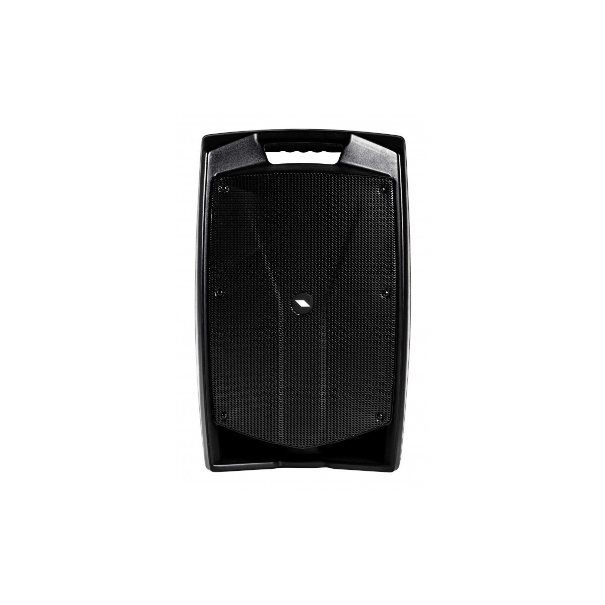 PROEL V12 WAVE. Enceinte active portable à 2 voies avec 600W de puissance en classe D, lecteur MP3 intégré et connectivité Bluetooth. Les caractéristiques techniques incluent un woofer de 12" à excursion longue avec pavillon à couverture constante, un tweeter à compression en néodyme de 1", 3 canaux d'entrée avec entrée RCA L/R et ligne-in via jack 2,5mm sur le canal 1, entrée XLR et TRS sur les canaux 2 et 3 avec slot USB pour le couplage de dispositifs sans fil, égaliseur à 2 bandes et sortie ligne via XLR. L'enceinte est également équipée d'un lecteur multimédia avec connectivité Bluetooth, lecteur MP3 et poignée rétractable pour le transport.
