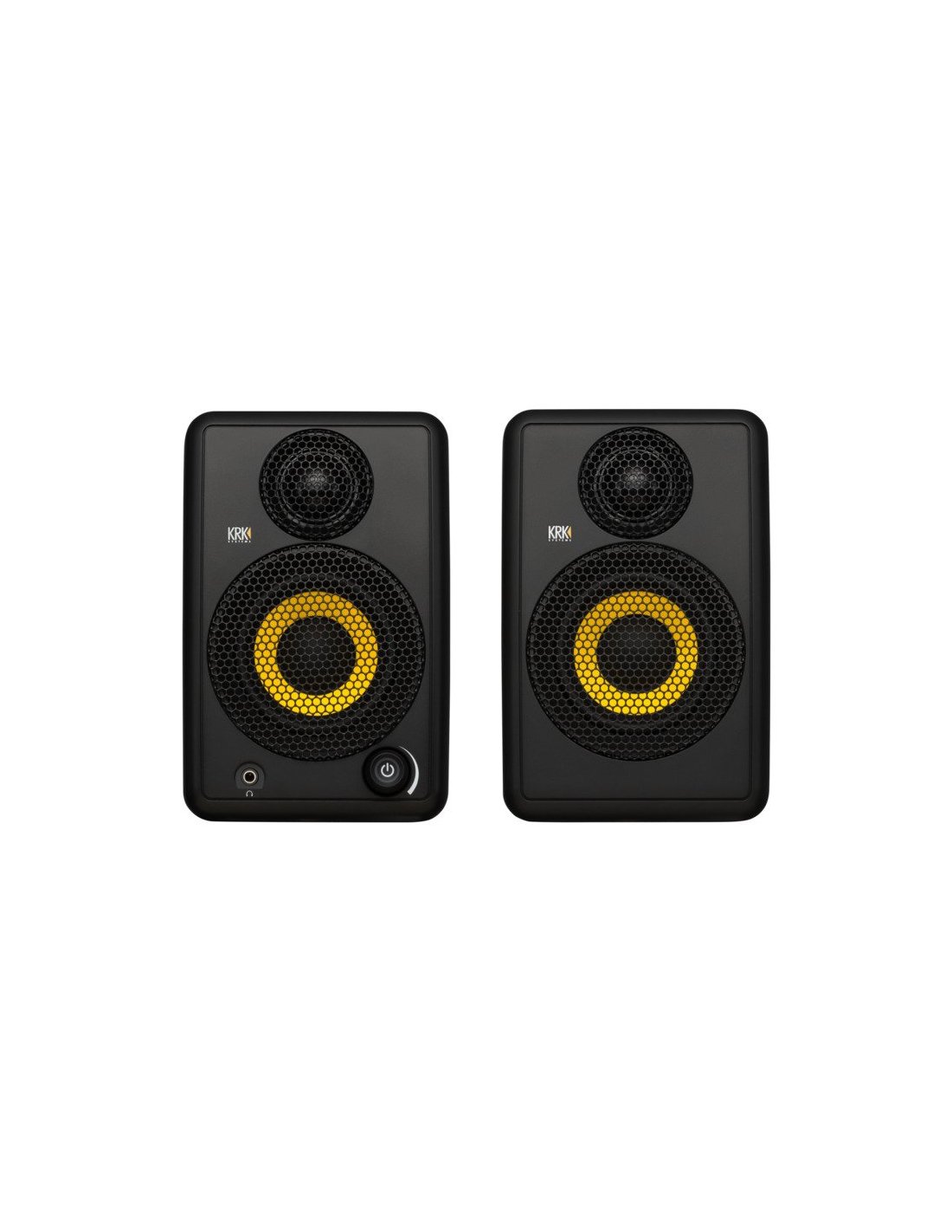 La Go Aux 3 est une paire de moniteurs portables de studio actifs à 2 voies de KRK. Ils sont équipés d'une bi-amplification en classe D de 60 W RMS, d'un woofer de 3" et d'un tweeter de 1", d'une égalisation LF et HF intégrée, d'entrées stéréo Aux et RCA de 1/8" et d'une fonctionnalité Bluetooth. L'emballage comprend deux supports isolants de table, deux câbles de connexion et un sac rembourré pour le transport.