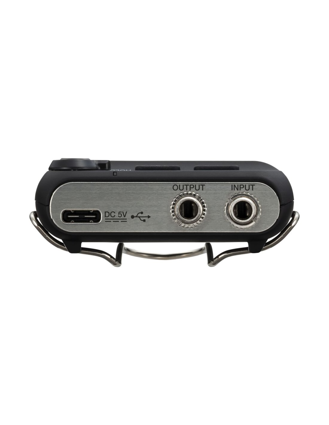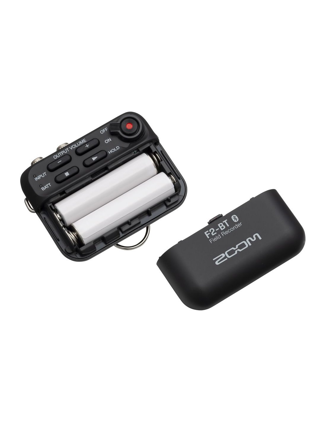 ZOOM F2 NOIR. Enregistreur portable à un canal avec microphone lavalier LMF-2 inclus. Les caractéristiques techniques incluent un enregistrement en 32 bits Floating Point en deux modes : 44,1 kHz/32 bits float ou 48 kHz/32 bits, entrée stéréo Mic/Line mini jack 1/8'' avec alimentation par Plug-in (2,5 V), sortie stéréo Phone/Line mini jack 1/8''. Enregistre directement sur carte micro SD et SDHC jusqu'à 512 Go, prise USB-C pour connexion au logiciel F2 Editor (Mac/PC Windows), alimenté par 2 piles AAA alcalines (jusqu'à 15h de fonctionnement), rechargeables Lithium/NiMH ou via un adaptateur secteur (AD-17) non inclus
