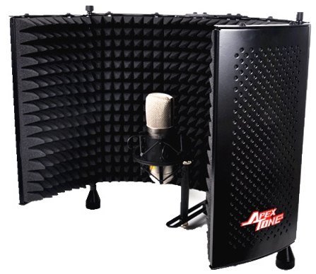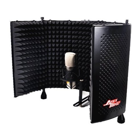 L’Apextone SI-05 est un écran réfléchissant professionnel, fabriqué avec des panneaux en mousse pyramidale haute densité ; l'écran peut être placé soit sur une table soit sur un support en utilisant le crochet approprié, tandis que le microphone peut être facilement ajusté en profondeur.