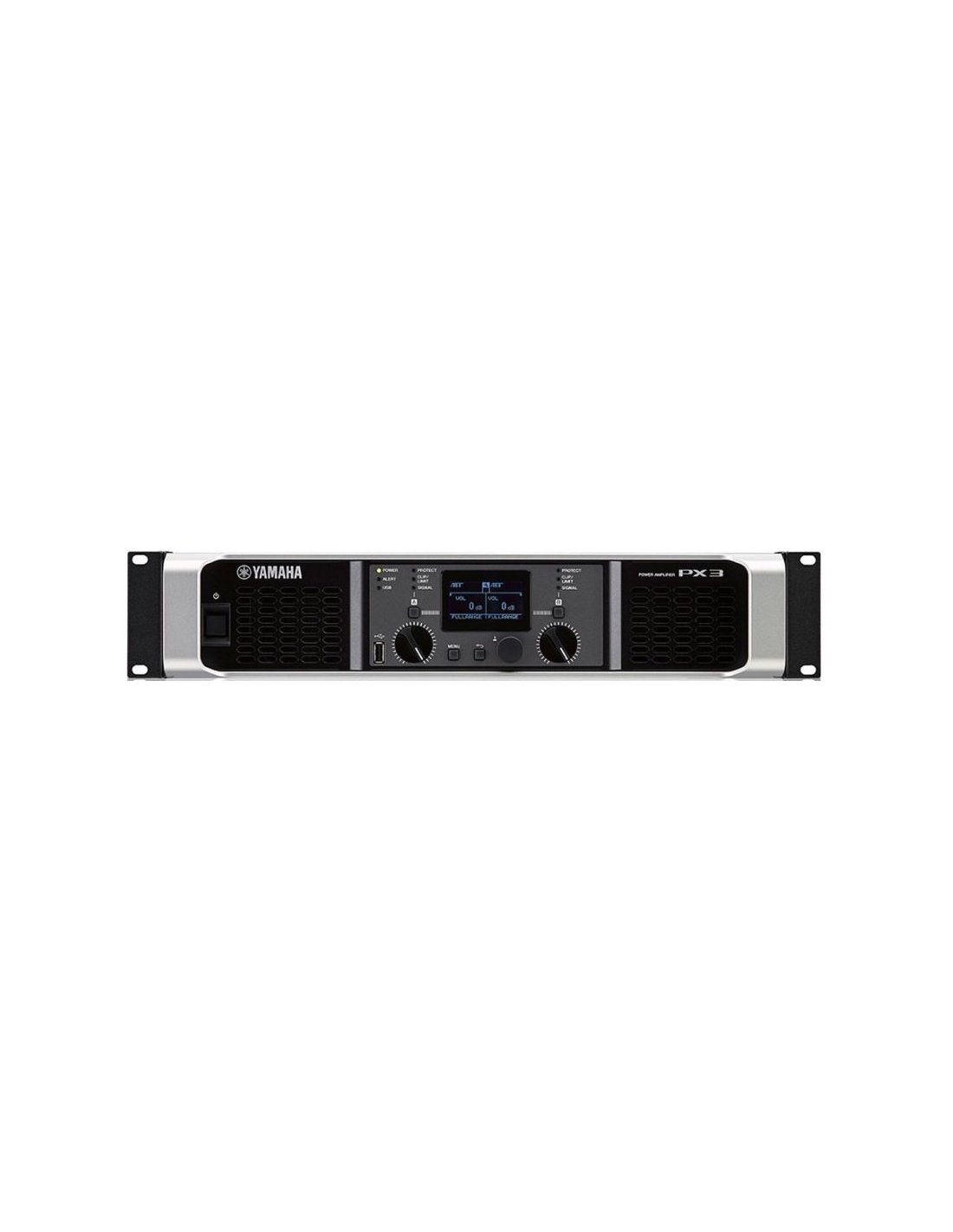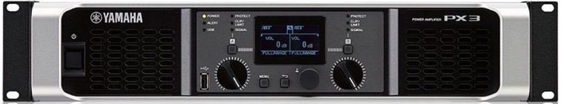 YAMAHA PX3 est un amplificateur stéréo de puissance professionnelle en Classe D avec DSP de 2x300W sur 2ohm / 2x500W sur 4ohm / 2x300W sur 8ohm. Les convertisseurs A/D D/A sont 24 bits / 128x suréchantillonnage et la réponse en fréquence est de 20Hz-20kHz. Les entrées sont 2 XLR + 2 TRS ; les sorties haut-parleurs sont 2 SpeakON + 2 paires de bornes + 2 TRS. Tous les amplificateurs de la série PX sont équipés d'indicateurs Power, Alert, USB, Protect (x2), Clip/Limit (x2) et Signal (x2). Une porte USB est présente pour le sauvegarde des presets et la mise à jour du firmware. Le DSP de YAMAHA PX5 permet le contrôle des paramètres D-Contour, Delay, HPF/LHF et du processeur de haut-parleur (PEQ à 6 bandes, Limiteur, Delay), avec 8 presets utilisateur. Le poids est de 6,9 kg.