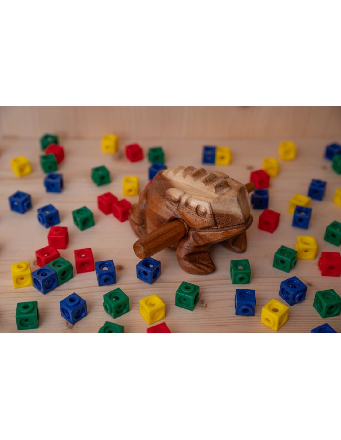 'Il Guiro NINO¨ Percussion Wood Frog cavo à l'intérieur avec un dos rainuré qui crée un son ''ribbit'' lorsque l'on frotte le bâton. L'apparence de l'instrument le rend amusant à jouer pour les enfants. Il produit un ton chaud et suave qui se mélange avec d'autres instruments dans un environnement scolaire, ou les enfants peuvent s'amuser à y jouer à la maison. Comprend un bâton en bois.Caractéristiques :Effet sonore réalisteBois massif Comprend un bâton en boisDimensions NINO513NT : 13,5 x 9 x 9 cm 5.3Ó x 3.5Ó x 3.5ÓNINO24'