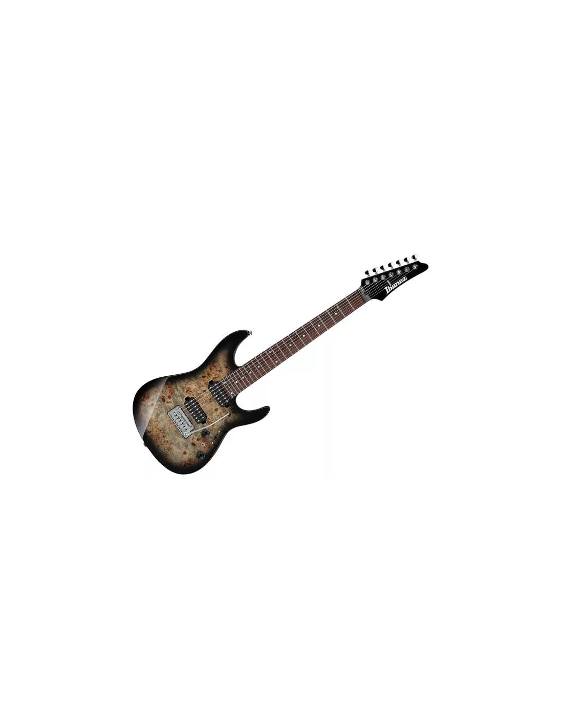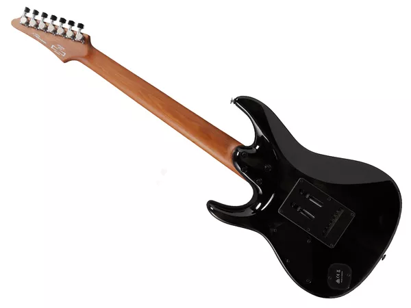 IBANEZ AZ427P1PB-CKB est une guitare électrique à 7 cordes de style moderne Solid body Strato avec un corps en racine de peuplier, un fond et des éclisses en tilleul américain, un manche AZ7 Oval C en érable torréfié, un doigté à rayon 12" en palissandre avec 24 frettes Jumbo en acier avec traitement des bords "Prestige" et des incrustations dot en nacre, un sillet en Graph tech, un matériel chromé, des mécaniques Gotoh MG-T locking et un pont Gotoh T1572 avec 5 ressorts et un système de trémolo à levier. L'électronique se compose de 2 micros Humbucker Seymour Duncan Hyperion 7 au chevalet et au manche avec des contrôles de volume et de tonalité, un sélecteur de micros à 5 positions et un sélecteur Alter-Switch.