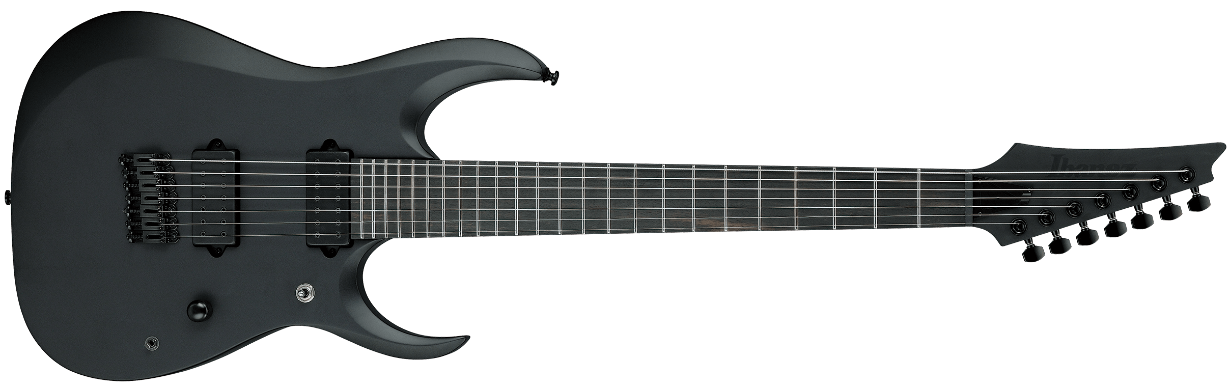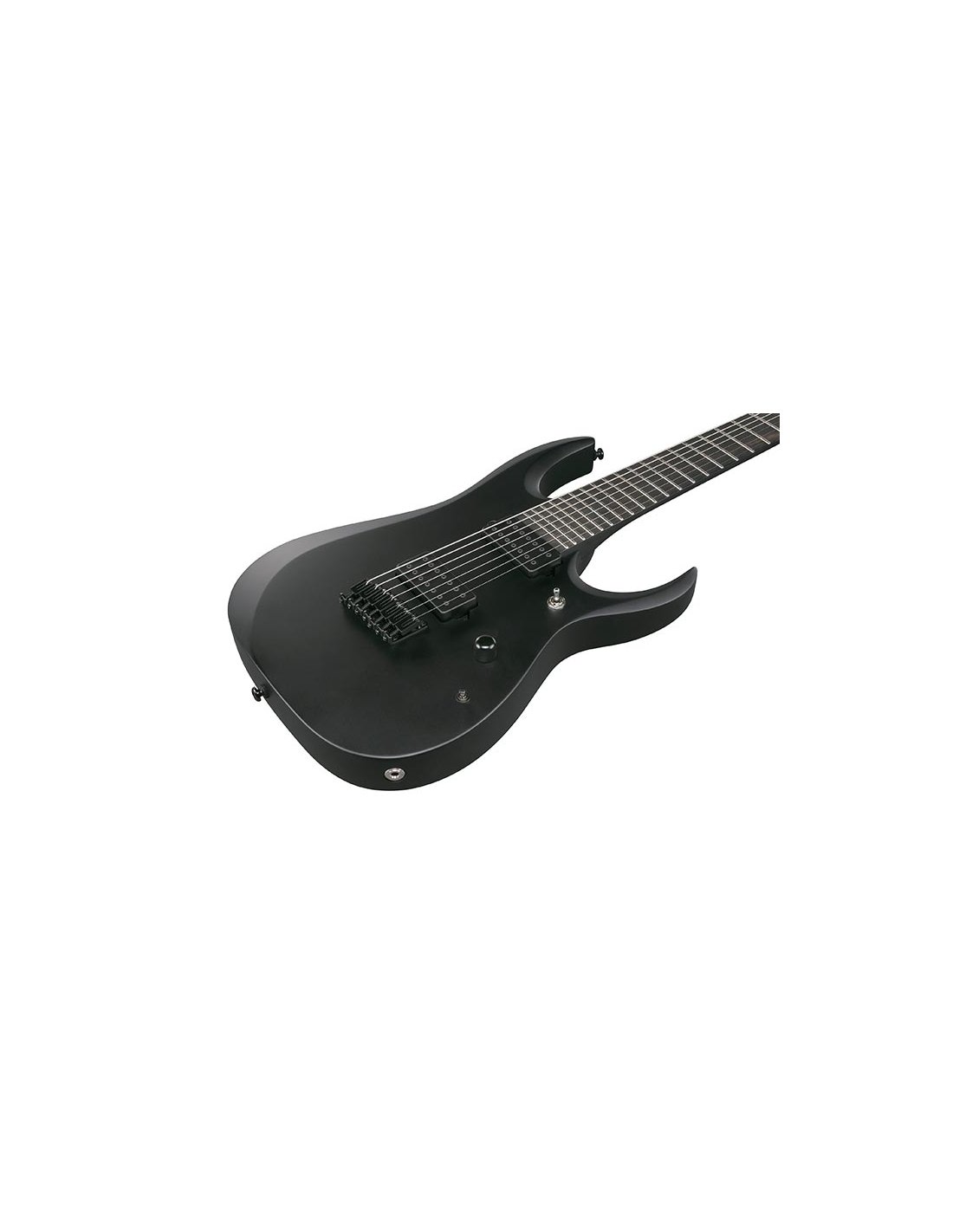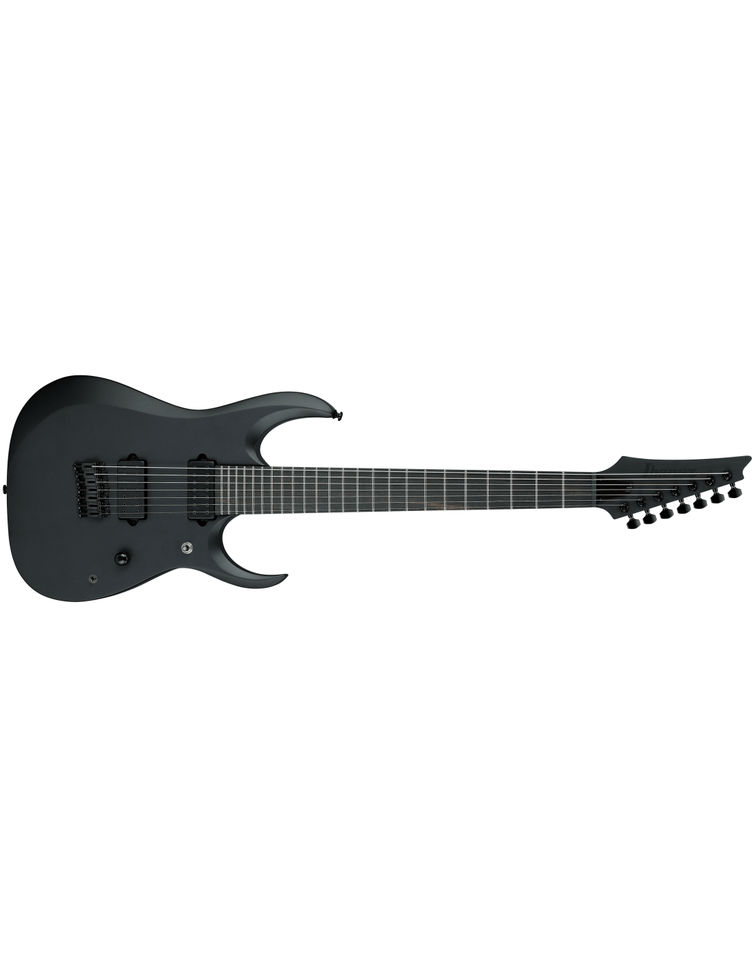 IBANEZ RGDRB71-BKF est une guitare électrique solid body à 7 cordes de la série Ibanez RGD, modèle RB71 IronLabel avec un corps en Nyato, un manche Wizard II-7 en érable Roasted, un doigté en Ébène à rayon 15,75" avec 24 frettes Jumbo et des repères latéraux Luminescent Side Dots, un sillet en PPS noir, quincaillerie noire, mécaniques Gotoh MG-T Locking Black et un pont Mono-rail bridge. L'électronique à configuration HH consiste en 2 micros Humbucker DiMarzio D Activator 7 Passive/Ceramic au pont et au manche, avec contrôle du Volume, sélecteur de micros à 3 voies et mini switch Coil Tap pour le splitting des bobines des micros.