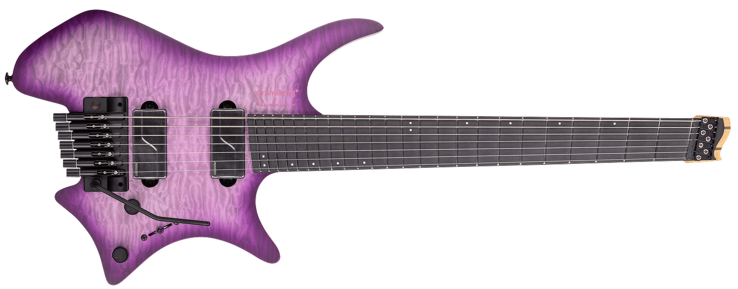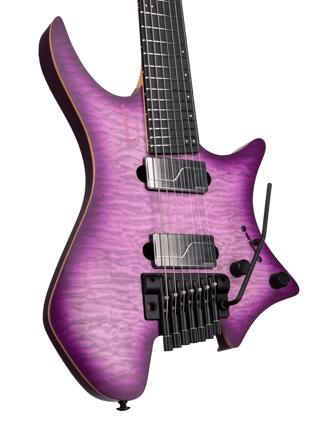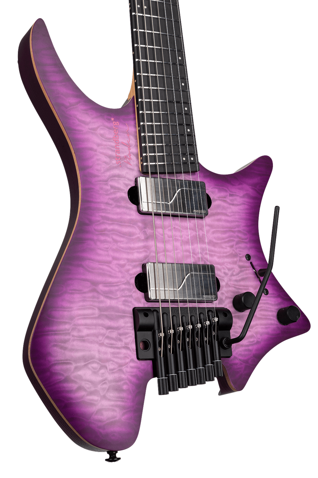 STRANDBERG BODEN PROG NX 7 TWILIGHT PURPLE est une guitare électrique à 7 cordes solid body Headless Strandberg Boden Prog NX 7, avec un corps en tilleul américain creusé avec un dessus en érable massif plaqué en érable flammé 4a, des accoudoirs et un corps sculptés, un manche en érable Quartersawn renforcé avec de la fibre de carbone à profil EndurNeck, une touche en Richlite à rayon 20" multiscale avec 24 frettes Jescar 51100 Fretwire et des incrustations Luminlay Green Inlays avec des points latéraux, un sillet en acier inoxydable, du matériel anodisé noir, un pont EGS Pro Rev7 système de tremolo & verrous de cordes, Truss Rod à double action. L'électronique à configuration HH consiste en 1 micro Humbucker Fishman Fluence Modern Ceramic au pont et 1 micro Humbucker Fishman Fluence Modern Alnico au manche avec contrôle Master Volume avec push/pull pour le split des bobines, Master Tone avec push/pull pour Voice 1/2 et sélecteur de micro à 3 voies. Inclut un étui de transport Strandberg Venture et un kit de clés Allen.