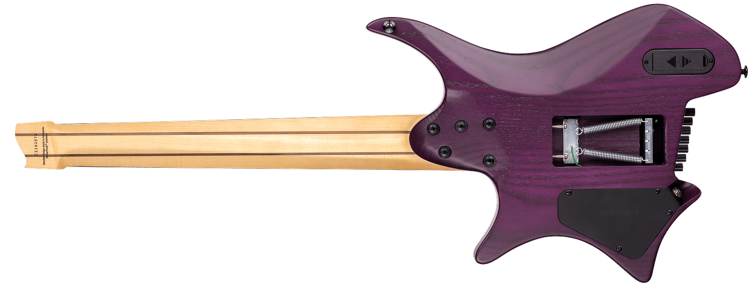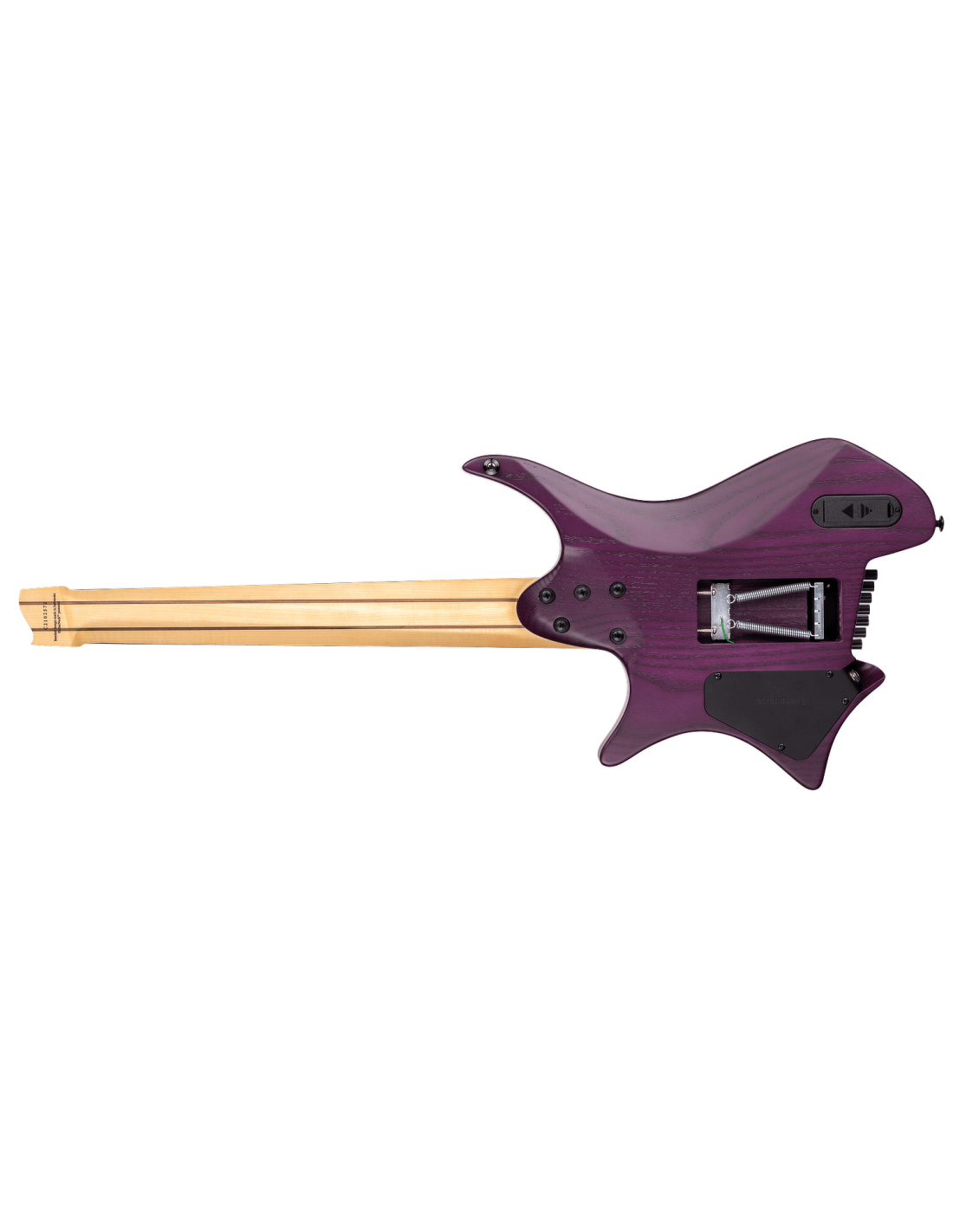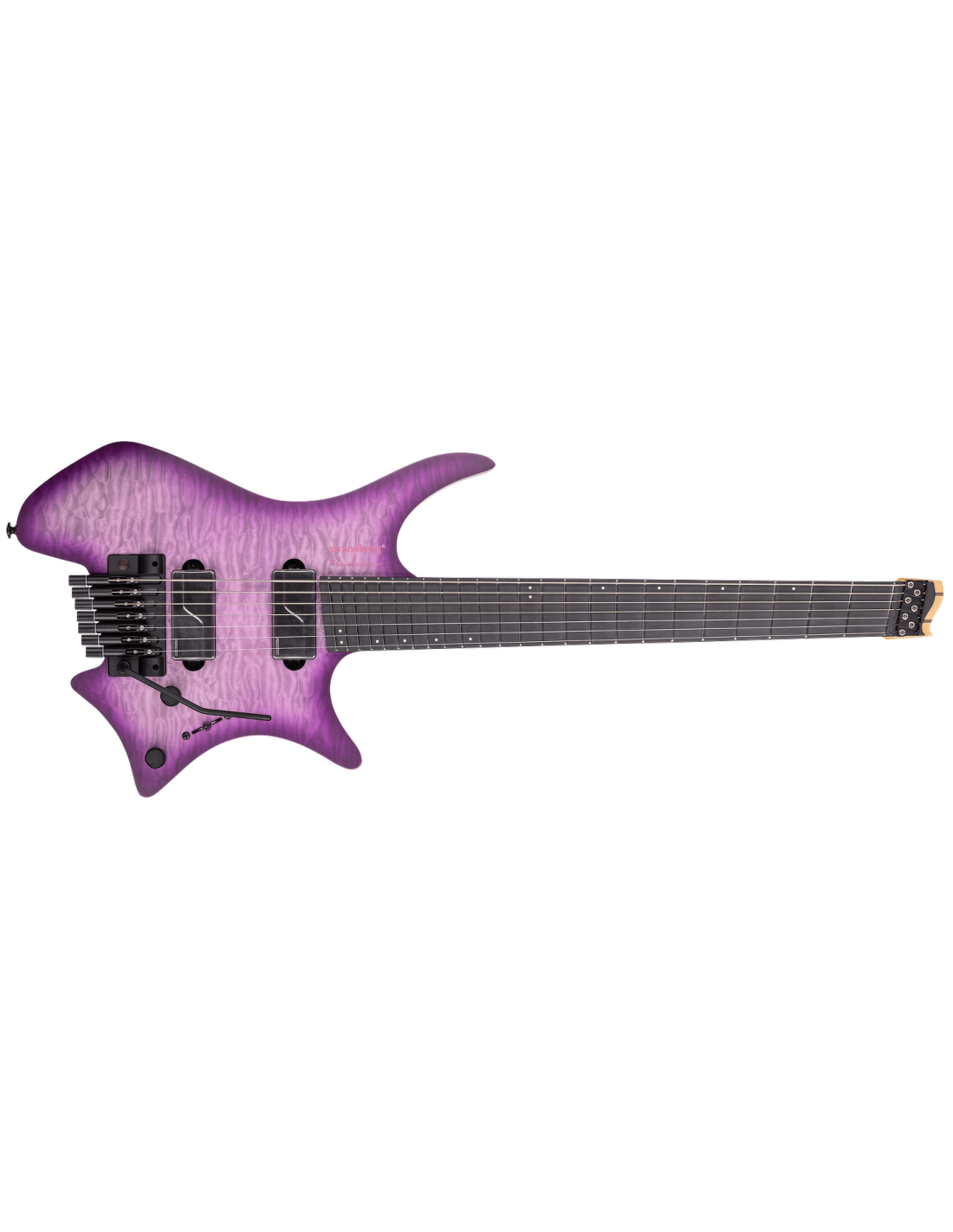 STRANDBERG BODEN PROG NX 7 TWILIGHT PURPLE est une guitare électrique à 7 cordes solid body Headless Strandberg Boden Prog NX 7, avec un corps en tilleul américain creusé avec un dessus en érable massif plaqué en érable flammé 4a, des accoudoirs et un corps sculptés, un manche en érable Quartersawn renforcé avec de la fibre de carbone à profil EndurNeck, une touche en Richlite à rayon 20" multiscale avec 24 frettes Jescar 51100 Fretwire et des incrustations Luminlay Green Inlays avec des points latéraux, un sillet en acier inoxydable, du matériel anodisé noir, un pont EGS Pro Rev7 système de tremolo & verrous de cordes, Truss Rod à double action. L'électronique à configuration HH consiste en 1 micro Humbucker Fishman Fluence Modern Ceramic au pont et 1 micro Humbucker Fishman Fluence Modern Alnico au manche avec contrôle Master Volume avec push/pull pour le split des bobines, Master Tone avec push/pull pour Voice 1/2 et sélecteur de micro à 3 voies. Inclut un étui de transport Strandberg Venture et un kit de clés Allen.