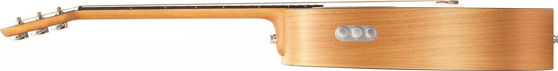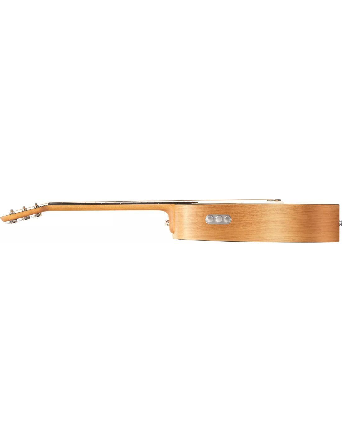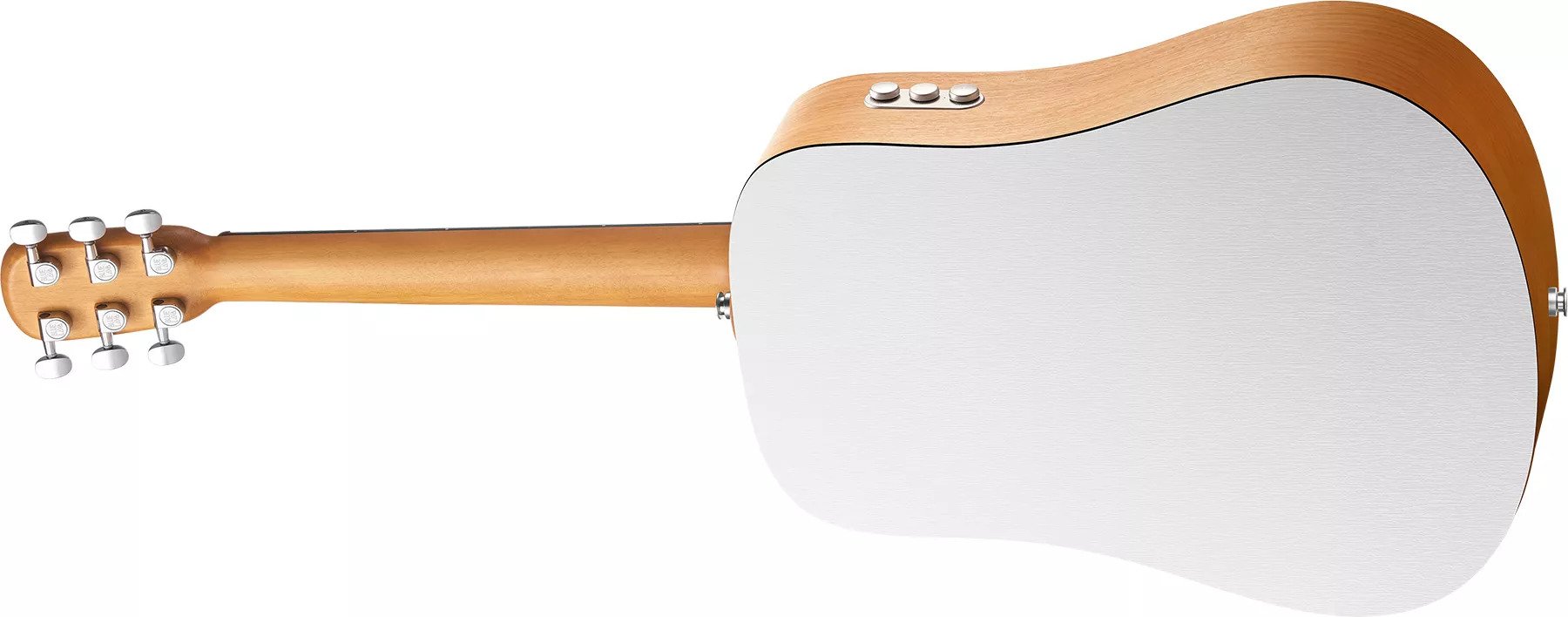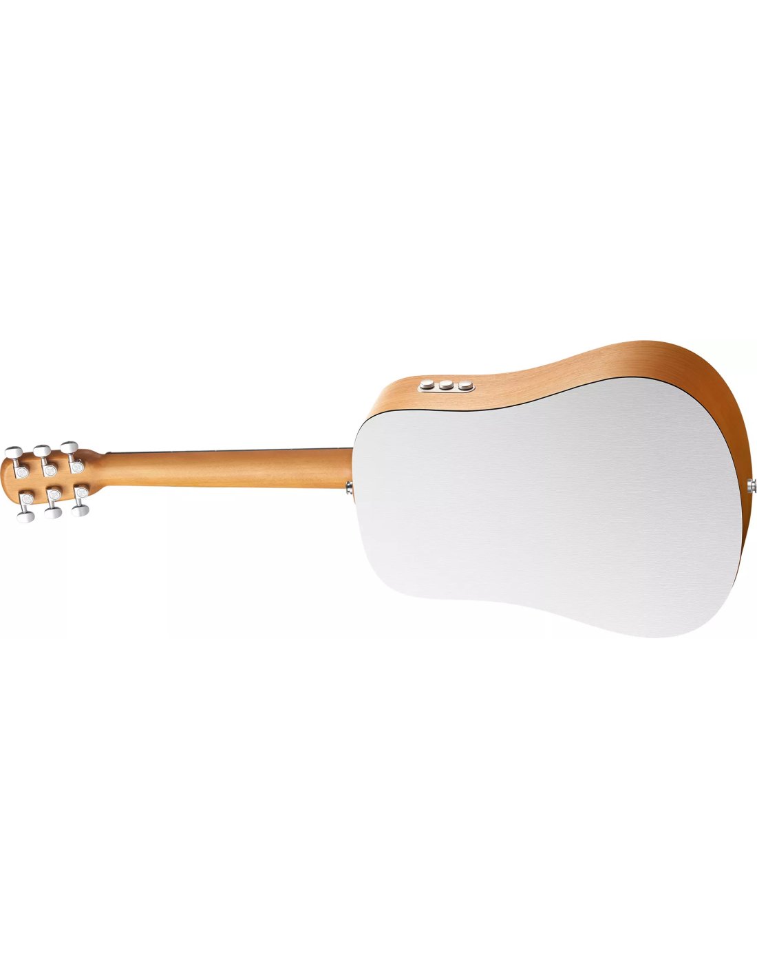 LAVA MUSIC BLUE ORIGINAL FREEBOOST. Guitare acoustique électrifiée réalisée en matériau composite HPL (High Pressure Laminate) de 36 pouces avec technologie L2 Pickup, qui permet de reproduire des effets sans connecter la guitare à l'amplificateur. Les caractéristiques techniques incluent préamplification via L2 Pickup, qui permet l'utilisation du dos de la guitare comme haut-parleur, technologie Freeboost avec effets de Réverbération, Chorus et Delay, pont en fibre composite haute performance, 18 frettes, truss rod réglable au manche. Inclut une housse de concert Airflow et un câble de recharge Micro USB. Finition : fond et table blancs, éclisses en finition naturelle.