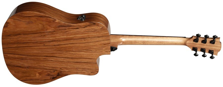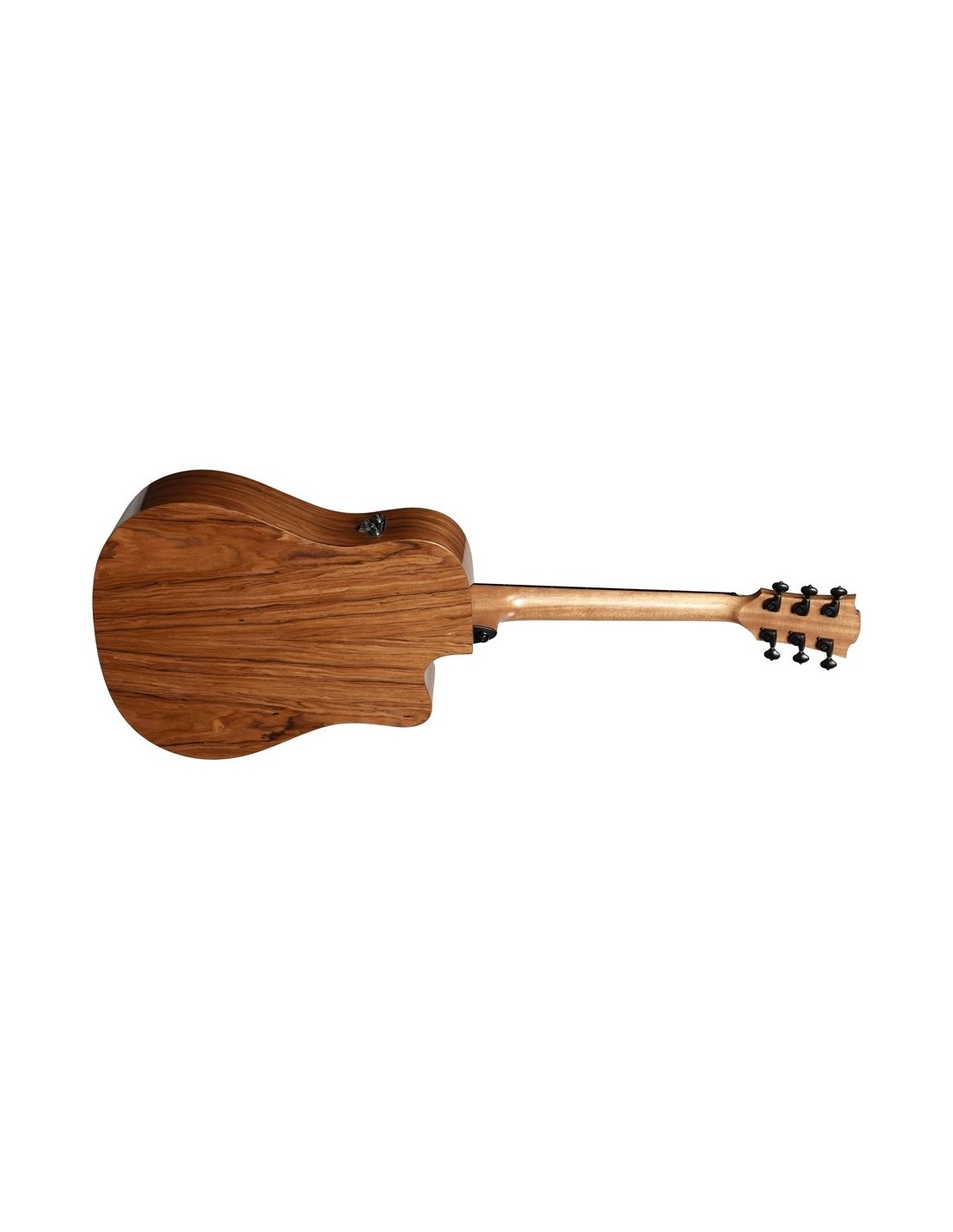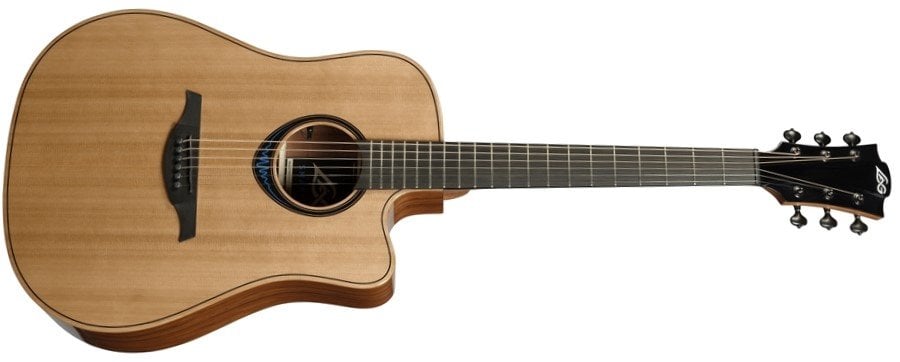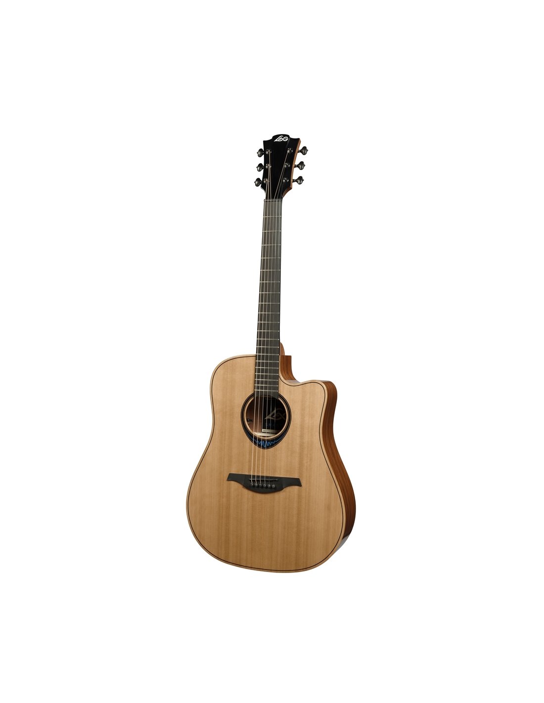 LAG TBW2DCE BLUE WAVE est une guitare acoustique intelligente au format Dreadnought Cutaway avec un système de préamplification Bluewave qui permet de transformer le corps de la guitare en un haut-parleur Bluetooth. Les caractéristiques techniques incluent un table en Cèdre Rouge Massif avec fond et éclisses en Palissandre Santos, un manche en Mogano Khaya, un touche et un chevalet en Brown BrankoWood, 20 frettes Medium en Alpacca, un Truss Rod à double action, un sillet en graphite, un matériel noir satiné et des mécaniques moulées. L'électronique consiste en un préamplificateur BlueWave avec des effets intégrés tels que la réverbération (room ou hall) et le delay, contrôlables via des boutons dédiés, permettant de connecter un appareil via Bluetooth et de transformer le corps de la guitare en un haut-parleur.