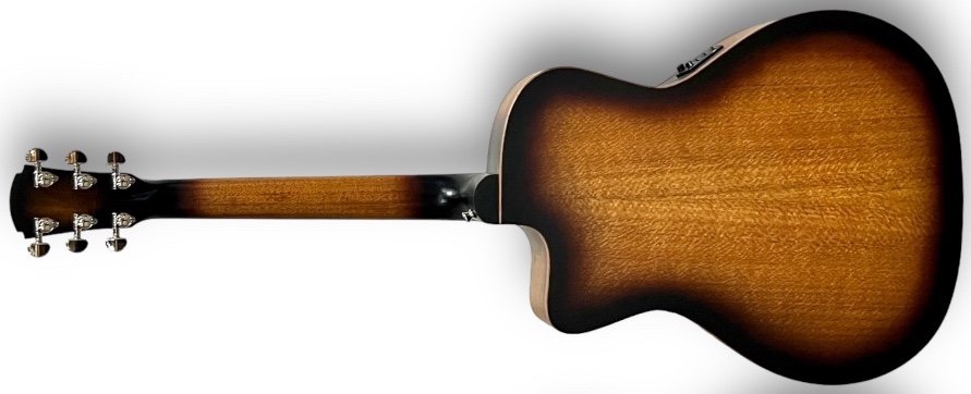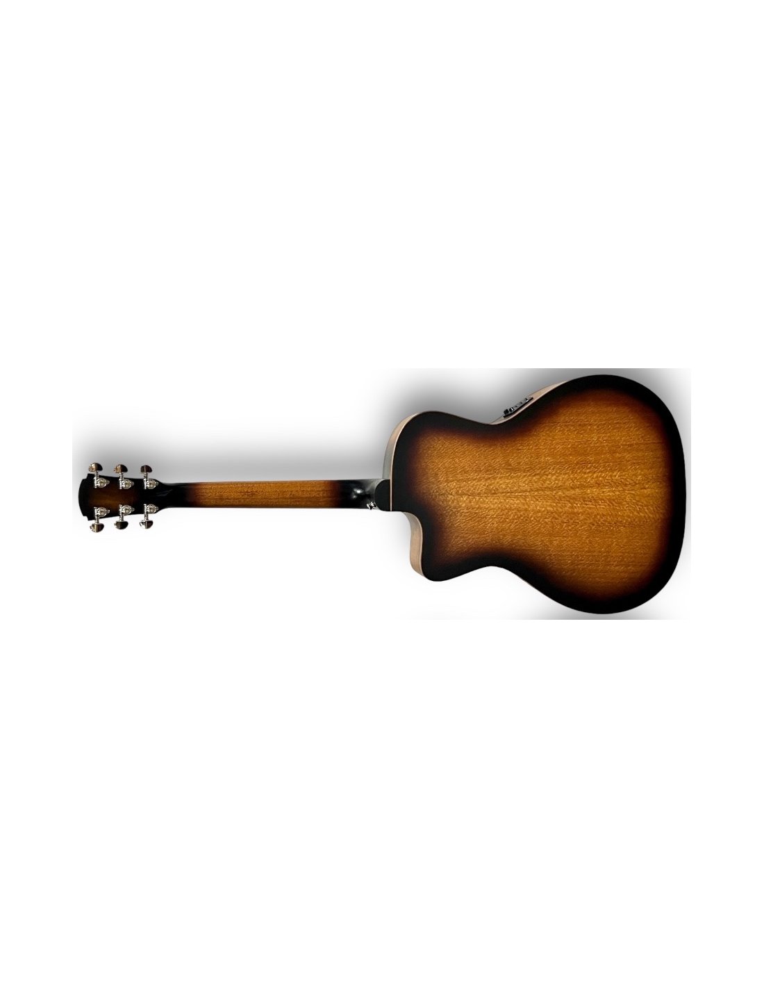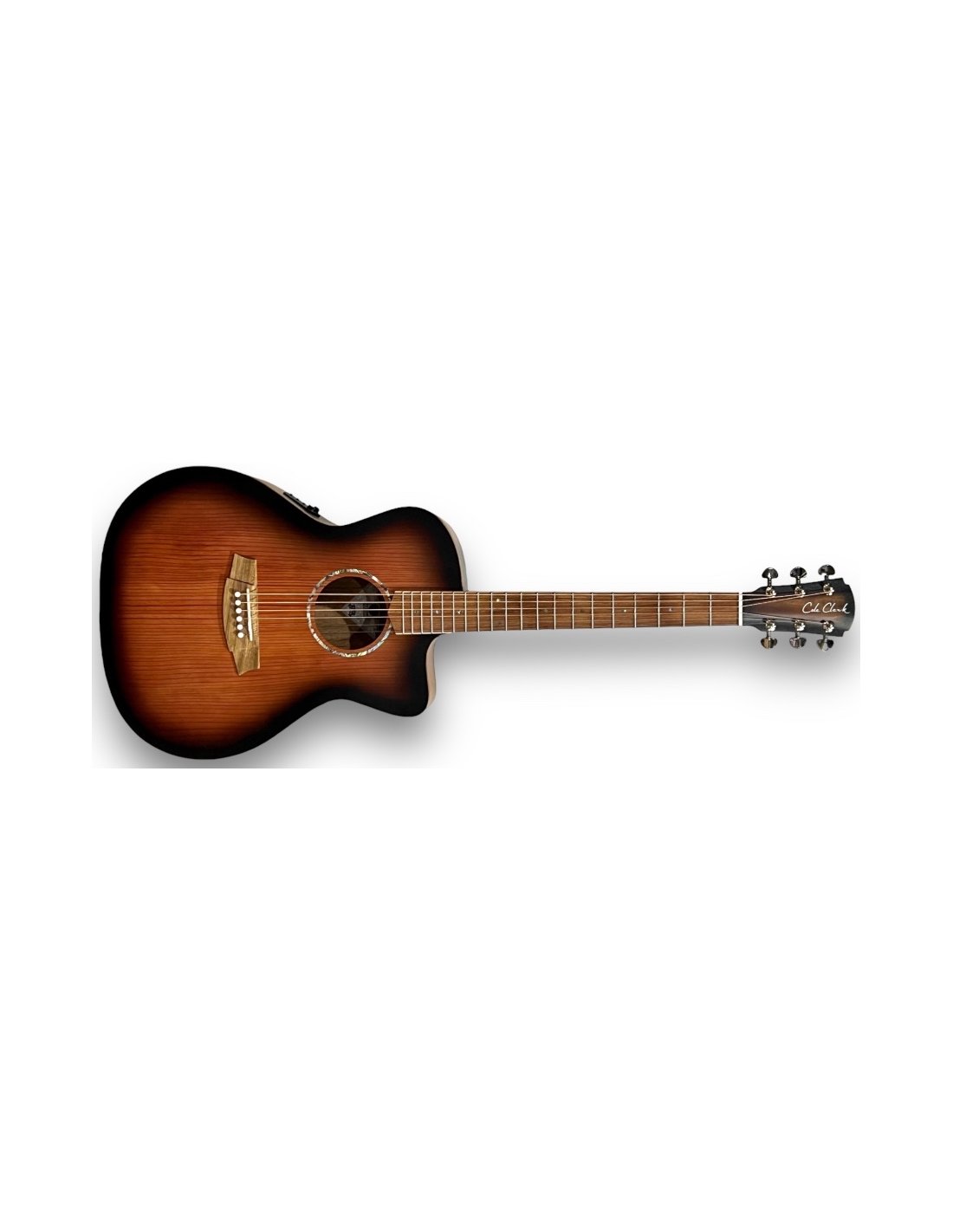 COLE CLARK AN1EC-RDM SUN ANGEL 1 STUDIO REDWOOD MAPLE SUNBURST est une guitare acoustique électrifiée de la série AN1EC-RDM ANGEL 1 avec un corps de format Studio Grand Auditorium, un dessus en séquoia californien cultivé en Australie, un fond et des éclisses en érable du Queensland, un manche en acajou africain, une touche en eucalyptus à rayon de 12" avec 20 frettes Jumbo et des incrustations Abalone Dots, un sillet et une selle Graph Tech Tusq, un matériel chromé, des mécaniques Grover et un pont en eucalyptus. L'électronique consiste en un système d'amplification Cole Clark PG3 avec un capteur piézoélectrique à bandes, un capteur de face appliqué sur le dessus et un microphone à condensateur, avec un préamplificateur doté d'un égaliseur à 3 bandes et de 3 contrôles de volume. Inclut un étui de transport Cole Clark heavy duty – Gris