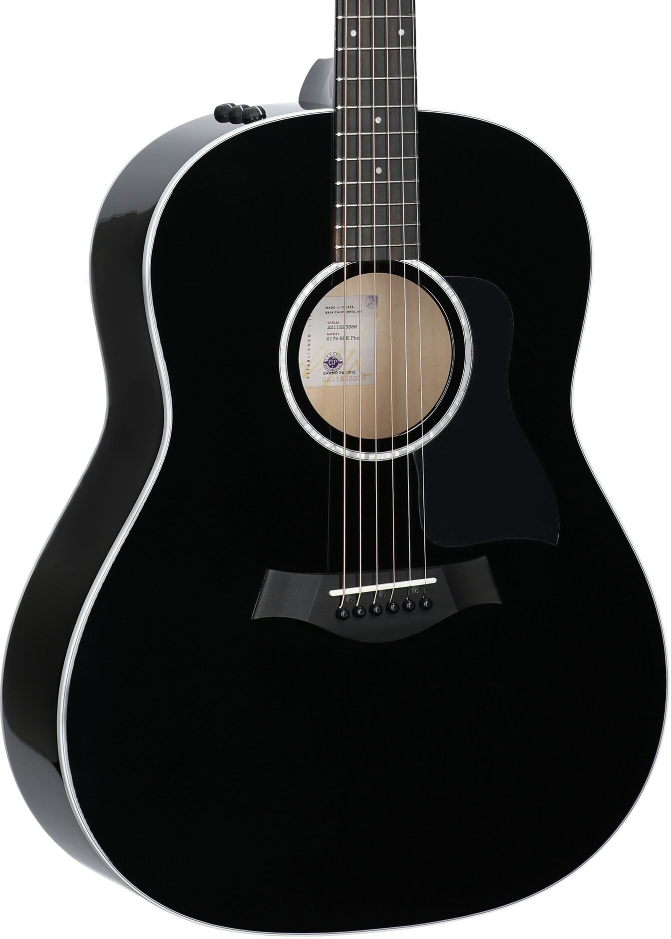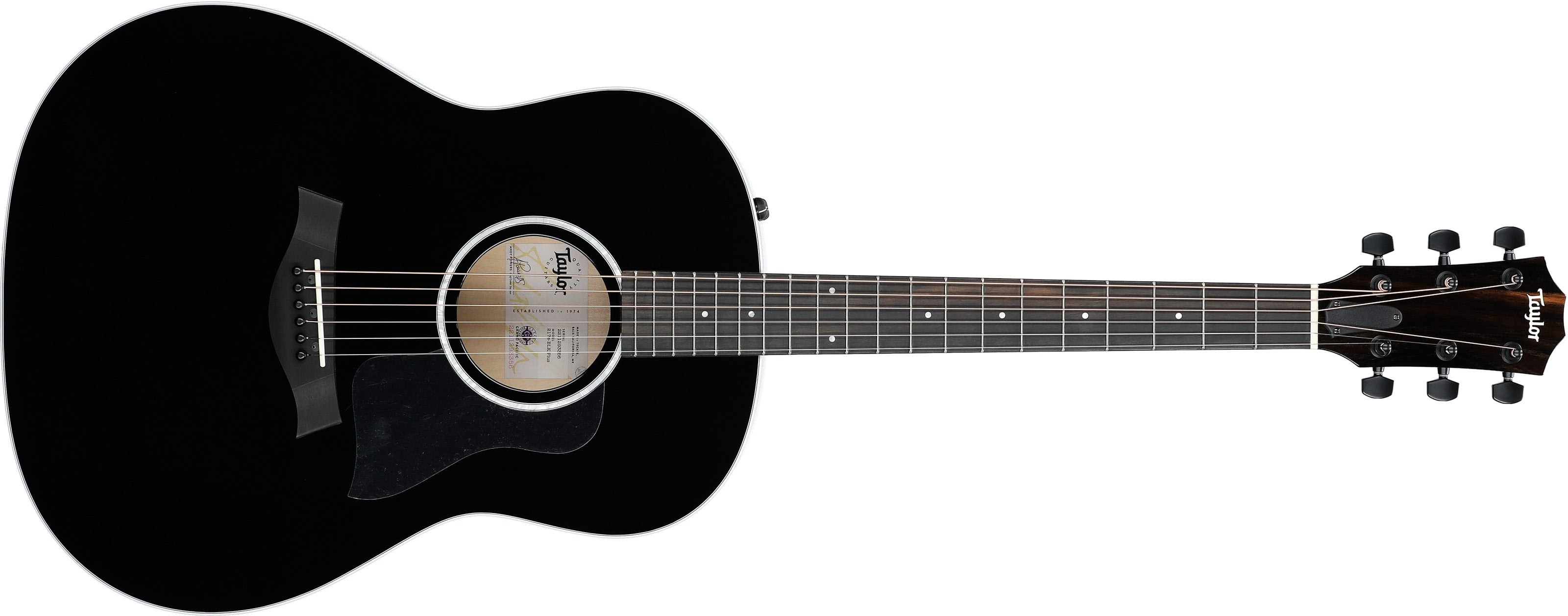 TAYLOR 217e BK PLUS MAPLE SPRUCE. Guitare acoustique électrifiée Taylor 217e-BLK Plus au format Grand Pacific avec finition noire. Les caractéristiques techniques incluent un dessus en épicéa Sitka massif avec un fond et des éclisses en érable stratifié, un manche en érable, un touche en ébène avec 20 frettes, des incrustations en faux perle de 4 mm, un trussrod réglable et un sillet en NuBone. L'électronique est équipée du système d'amplification Taylor Expression System 2, elle présente également un chevalet en ébène avec sillet/chevalets NuBone/Micarta et des mécaniques Taylor Satin Black. Comprend un étui gig Taylor.