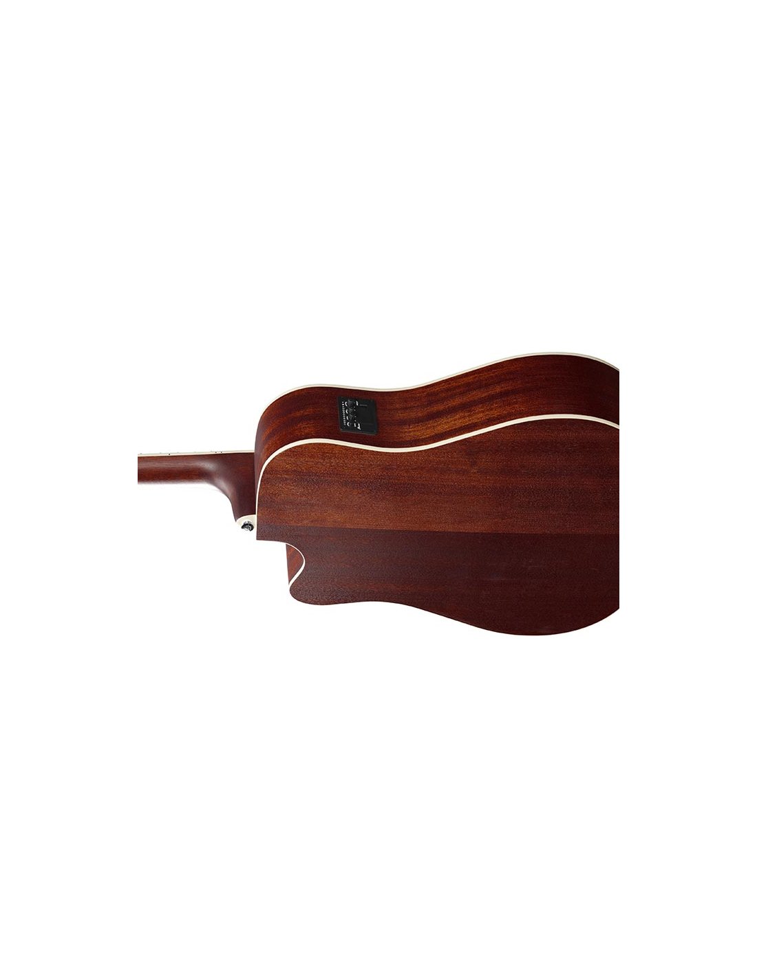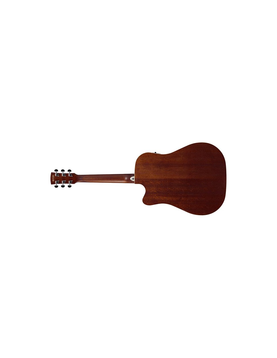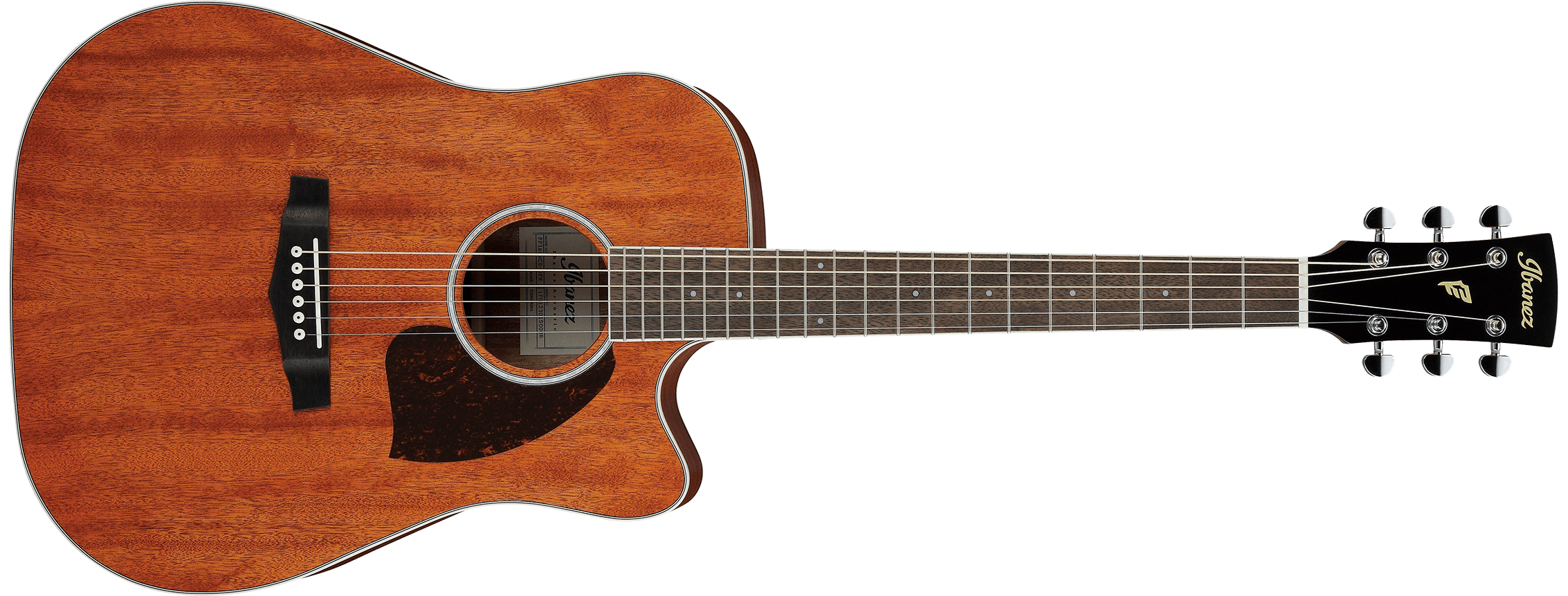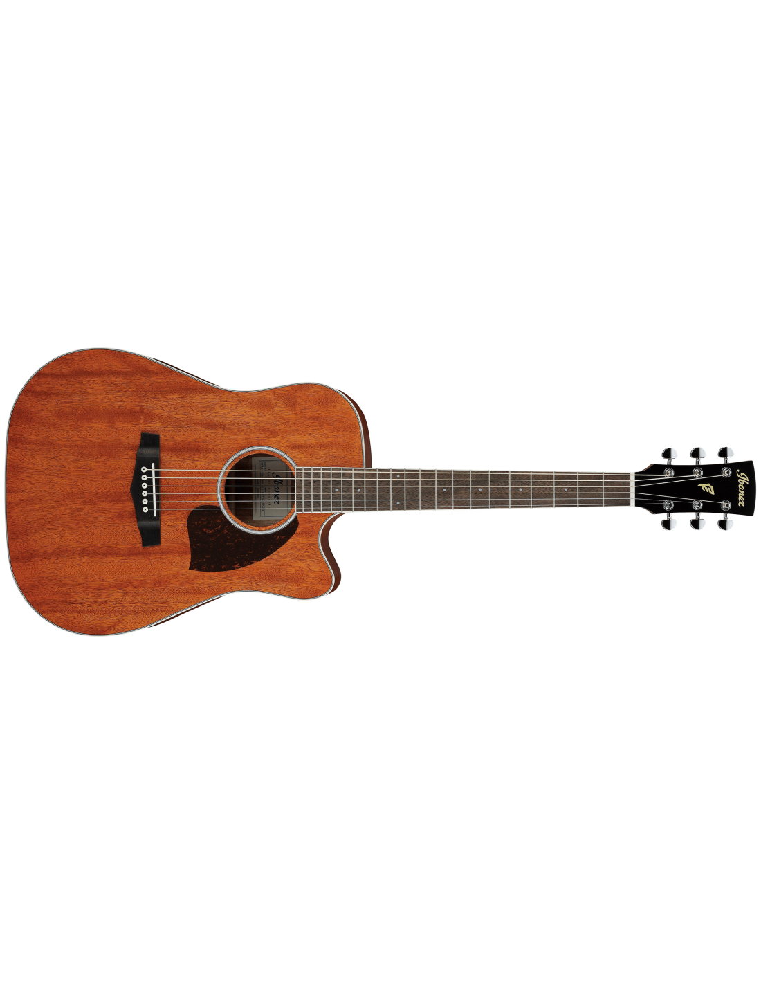 IBANEZ PF16 MW CE OPN est une guitare acoustique électrifiée, format Dreadnought Cutaway, modèle Ibanez PF16MWCE, avec table, dos et éclisses en Okoumé, manche en Nyato à profil PF, touche en Laurier à rayon de 16" avec 20 frettes Standard et incrustations White dot inlay, sillet large de 48mm, matériel nickelé, mécaniques Chrome Open Gear et chevalet en laurier avec chevilles de retenue de cordes Ibanez Advantage et selle en os compensé. L'électronique consiste en un préamplificateur Ibanez AEQ-2T avec micro Piezo sous-selle céramique, égaliseur à 2 bandes, accordeur intégré et contrôle du Volume.