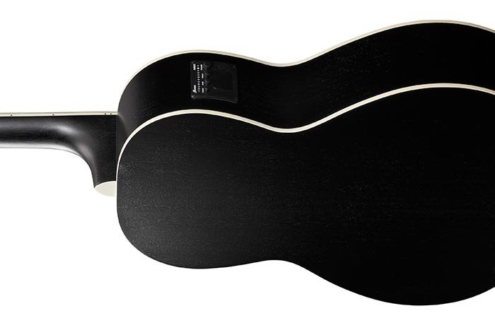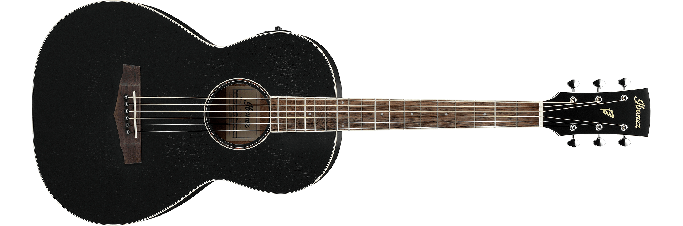 IBANEZ PN14MHE-WK est une guitare acoustique électrifiée, format Parlor, modèle Ibanez PN14MHE, avec un dessus, un fond et des éclisses en Okoumé, un manche en Nyato au profil PN, un doigté en Laurier avec un rayon de 9,5" et 18 frettes Standard et des incrustations en point blanc, un sillet de 42 mm, un matériel nickelé, des mécaniques Chrome Open Gear et un pont en laurier avec des chevilles de retenue de cordes Ibanez Advantage et une selle en os compensé. L'électronique se compose d'un préamplificateur Ibanez AEQ-2T avec un micro Piezo sous-selle céramique, un égaliseur à 2 bandes, un accordeur intégré et un contrôle de volume.