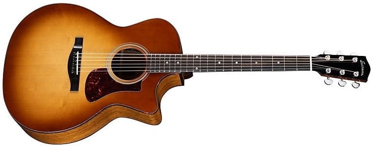 EASTMAN AC222CE-DLX-GB est une guitare acoustique électrifiée de la série AC222-CE Deluxe avec un corps de format Grand Auditorium, un fond et des éclisses en Ovangkol, un dessus en épicéa Sitka massif, un manche en acajou au profil Traditional Even C, un touche en ébène à rayon 12" avec 22 frettes Jescar-FW43080 et des incrustations en points de perle, un sillet en os, un matériel nickelé, des mécaniques Ping RM 1171-CVR 3+3 et un pont en ébène avec une selle en os. L'électronique consiste en un système d'amplification Fishman Presys VT composé d'un système piézo de caisse avec des contrôles de volume et de tonalité. Inclut un Deluxe Eastman Gig Bag