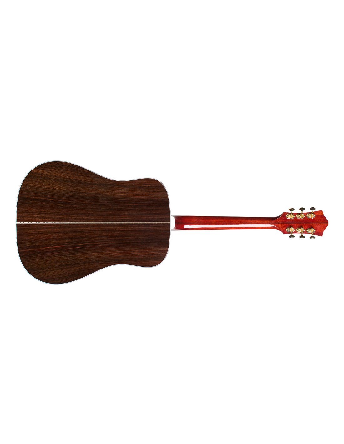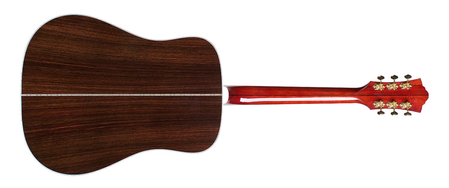 Introduite pour la première fois en 1968 en tant que modèle spécial haut de gamme, la D-55E a été tellement appréciée qu'elle a incité Guild à l'introduire dans la production régulière dès 1974. Notamment utilisée par Tommy Smothers dans ses spectacles dans les années 1960, la D-55 est restée durable et populaire, devenant la préférée d'artistes tels que Waylon Jennings, Billie Joe Armstrong et David Nail. Réintroduite en 2017, la Guild D-55E est revenue améliorée et actuelle. La D-55E reste fidèle dans ses équipements à son ancêtre de 1968, incluant une table en épicéa Sitka, un dos et des éclisses en palissandre indien massif, un manche et un chevalet en ébène, et une finition en nitrocellulose brillante naturelle. Les finitions internes prévoient un barrages en Adirondack ainsi qu'un joint de manche à queue d'aronde révisé et corrigé pour rendre cette génération de D-55E la plus légère et jouable de tous les temps. La D-55E présente la tête Guild la plus reconnaissable et arbore le "Pic et Écu" de Guild en combinaison d'incrustations sur ébène figuré. Le manche en ébène est doté d'incrustations iconiques "V-Blocks" et d'un multi-lignes "railroad track", l'échelle est de 651 mm, le sillet (capot) a une largeur de 43 mm en os comme pour le traversin, les bindings et le purfling sont en ABS, le pickguard en celluloïd tortoise. Le manche de la D-55E est monté sur un manche en acajou profilé en C avec un magnifique renfort central en noyer qui court sur toute la longueur jusqu'à la tête. Les mécaniques fournies sont des Gotoh SE700 dorées. La finition nitro de la D-55E est disponible en Natural et est appliquée par pulvérisation, avec une épaisseur minimale pour garantir la résonance maximale des essences. Chaque guitare inclut un certificat d'authenticité signé et un étui rigide en bois Guild avec un système d'humidification Humicase®. Le système d'amplification est L.R. Baggs Anthem.