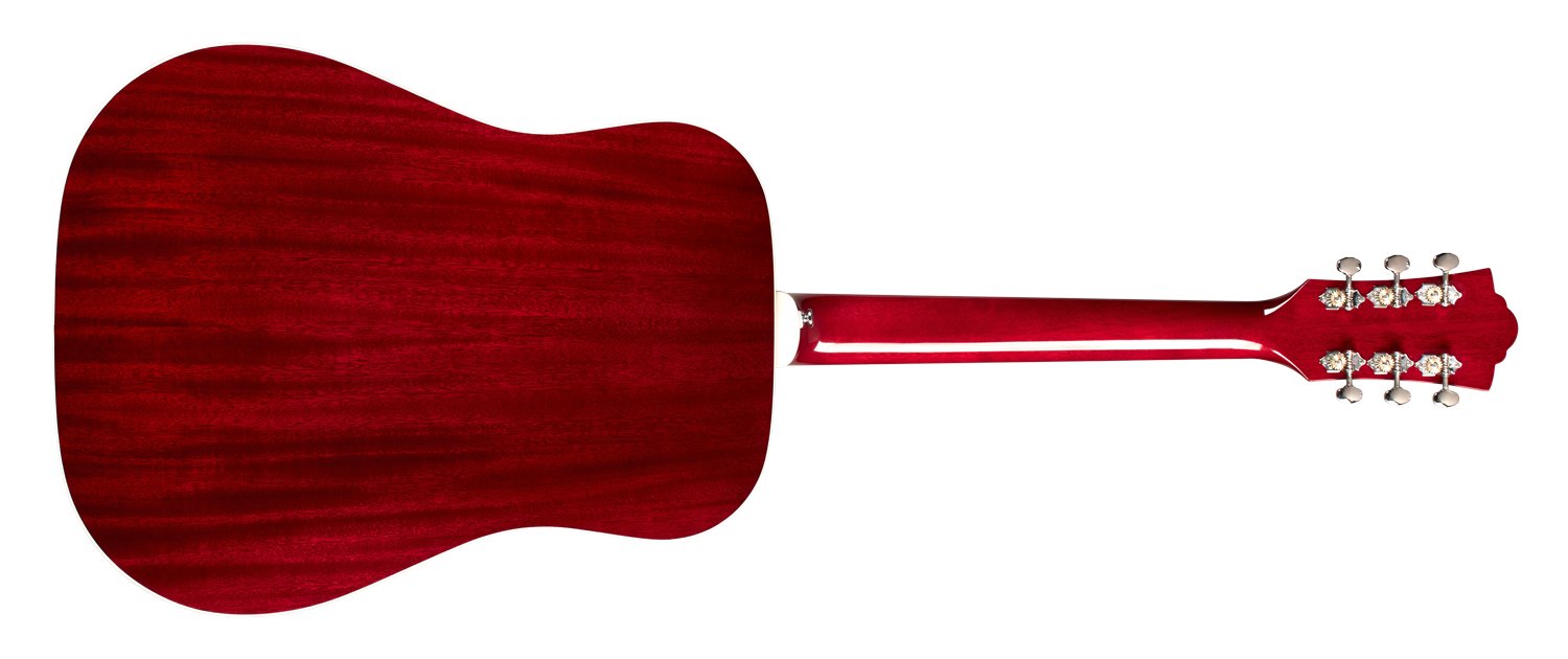 D'autres caractéristiques premium incluent les mécaniques ouvertes Guild Vintage 18 avec un rapport de démultiplication de 18:1, un binding en Ivoroid et un sillet/selle en os. Une rosace en nacre et l'emblème iconique de la tête Chesterfield de Guild, rappelant les modèles des années 60, complètent le paquet. Expédié avec une housse premium Guild pour guitare acoustique.
