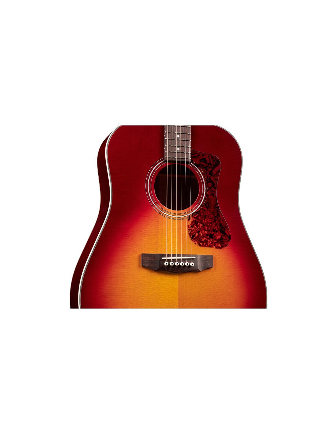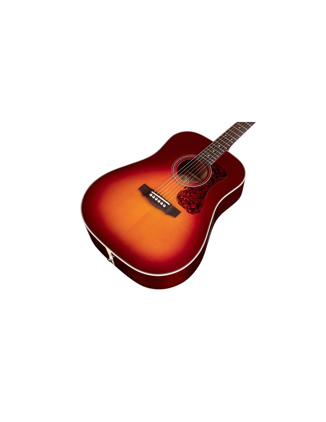 Les modèles D-140 de Guild sont des dreadnought orientées vers la performance, avec toute la jouabilité, le ton et le charme qui ont fait de Guild un nom de référence pour les musiciens exigeants depuis plus de 70 ans. Le D-140 Cherry Burst ajoute une nouvelle option de couleur à la série D-40 et D-140 toujours populaire, avec une finition classique Cherry Burst qui contraste magnifiquement avec le binding en Ivoroid et les incrustations en nacre dans la rosace et sur la tête. Des caractéristiques premium telles que des bois entièrement massifs, un sillet et une selle en os, ainsi qu'une housse rembourrée premium de Guild avec un intérieur en micropolaire, font du D-140 un instrument de niveau professionnel riche en valeur incroyable.