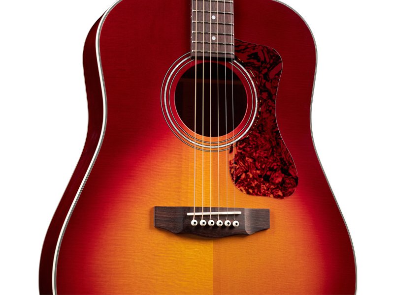 Cette dreadnought complète et puissante offre aux guitaristes un son acoustique classique et une voix équilibrée grâce à ses bois entièrement massifs. Un épicéa Sitka massif pour le dessus et un acajou africain massif pour le fond et les éclisses constituent une excellente combinaison, les barres harmoniques sculptées et le manche et le chevalet en palissandre conférant à cet instrument une attaque et une tonalité qui définissent le son Guild.