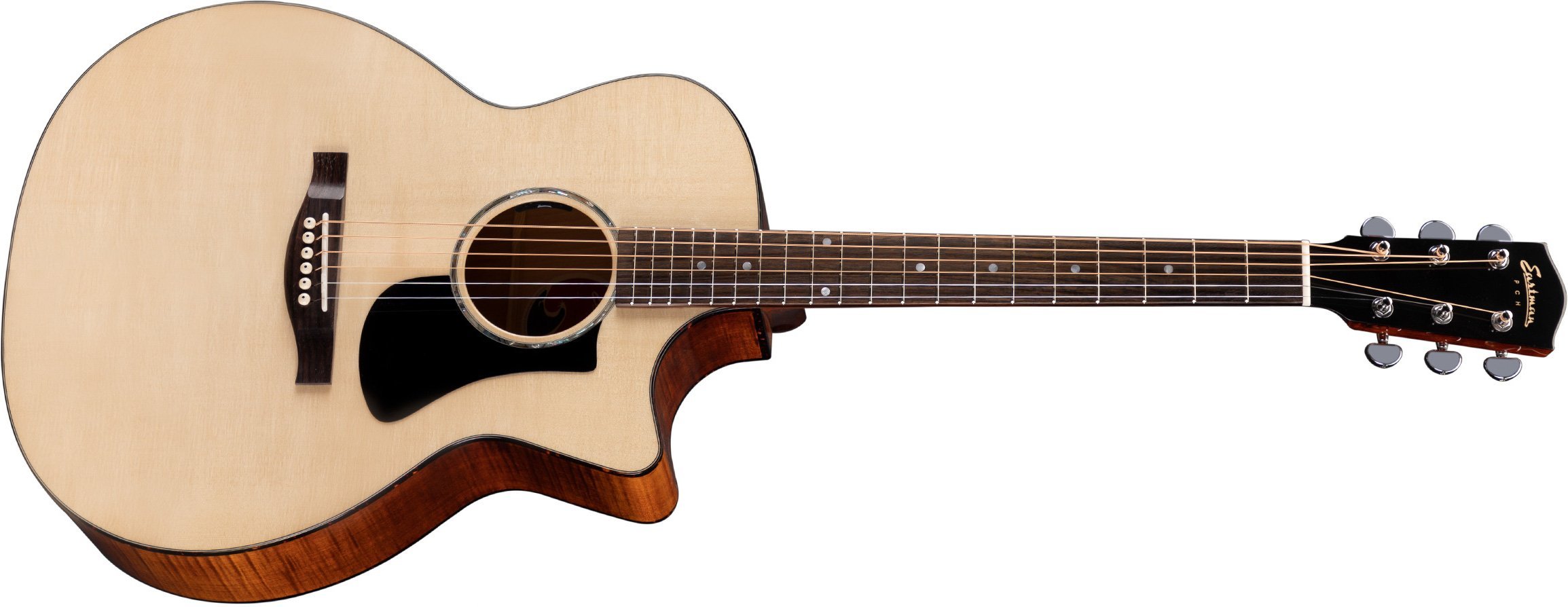 EASTMAN PCH3-GAce CLASSIC + GIGBAG est une guitare acoustique électrifiée de la série PCH3-GACE avec un corps de format Grand Auditorium, un fond et des éclisses en acajou laminé, une table en épicéa Sitka massif, un manche en acajou au profil Traditional Even C, un touche en Ovangkol avec un rayon de 12" et 22 frettes Jescar-FW43080 et des incrustations en points de perle, un sillet en os, un matériel nickelé, des mécaniques PingWell RM 1171-CVR 3+3 et un chevalet en Ovangkol avec une selle en os. L'électronique consiste en un système d'amplification Eastman Pickup by Fishman composé d'un système piézo à trou de résonance avec des contrôles de volume et de tonalité. Inclut un étui rembourré Eastman.