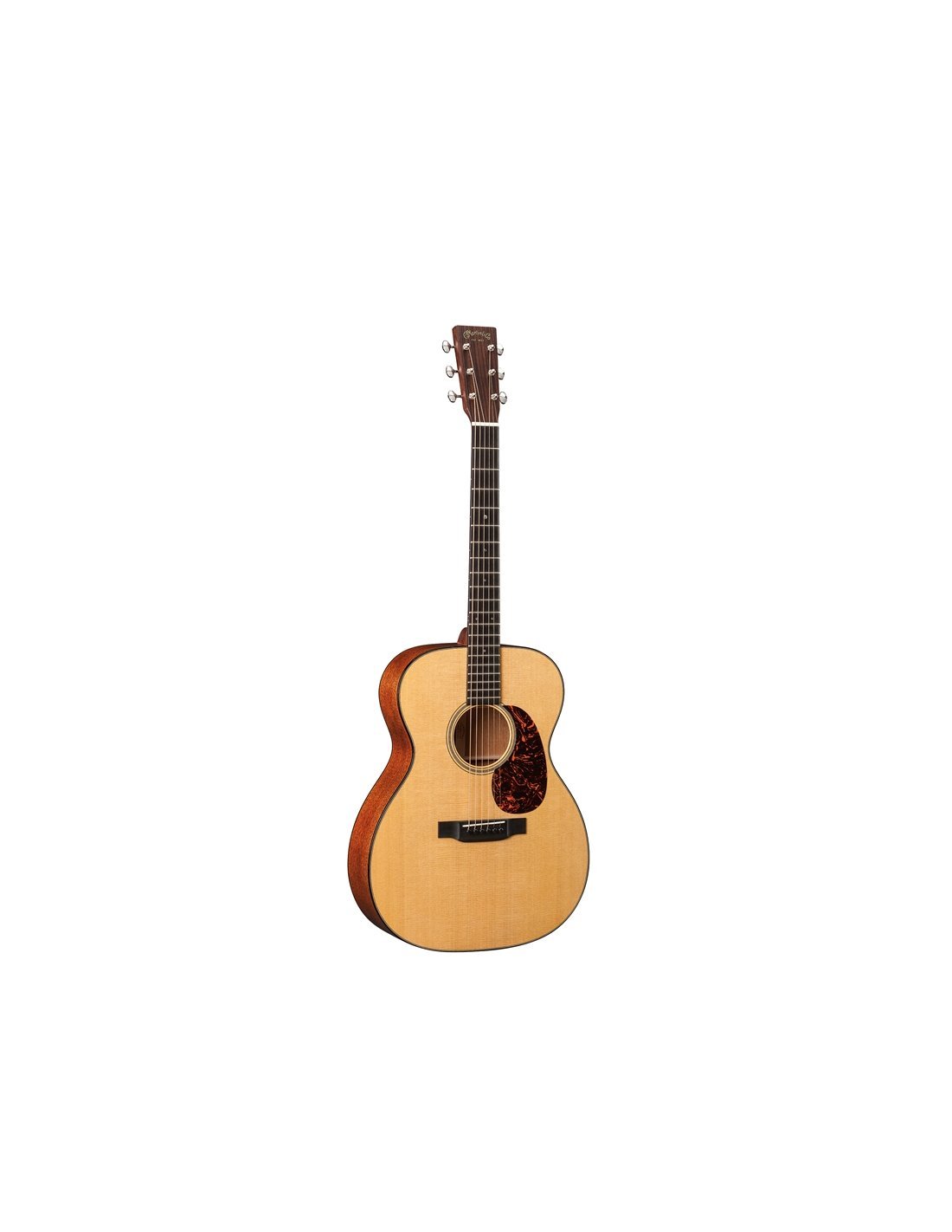 MARTIN 000-18. Guitare acoustique MARTIN 000-18 avec finition naturelle brillante. Les caractéristiques techniques incluent un corps en acajou massif 000 14-Fret, un dessus en épicéa vieilli, un manche en acajou massif à profil modifié Low Oval, un doigté en ébène avec 20 frettes, des incrustations Old Style 18 en abalone vert, un trussrod réglable, un sillet et des selles en os. Elle présente également un pont en ébène Modern Belly-Drop in Saddle, des mécaniques ouvertes en nickel avec des clés en ivoire. Fournie avec une housse Martin Ply Hardshell Case.