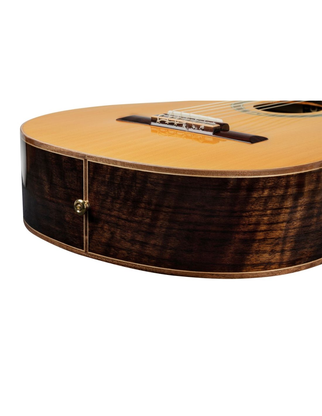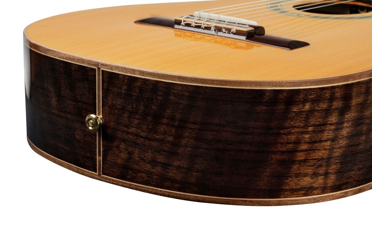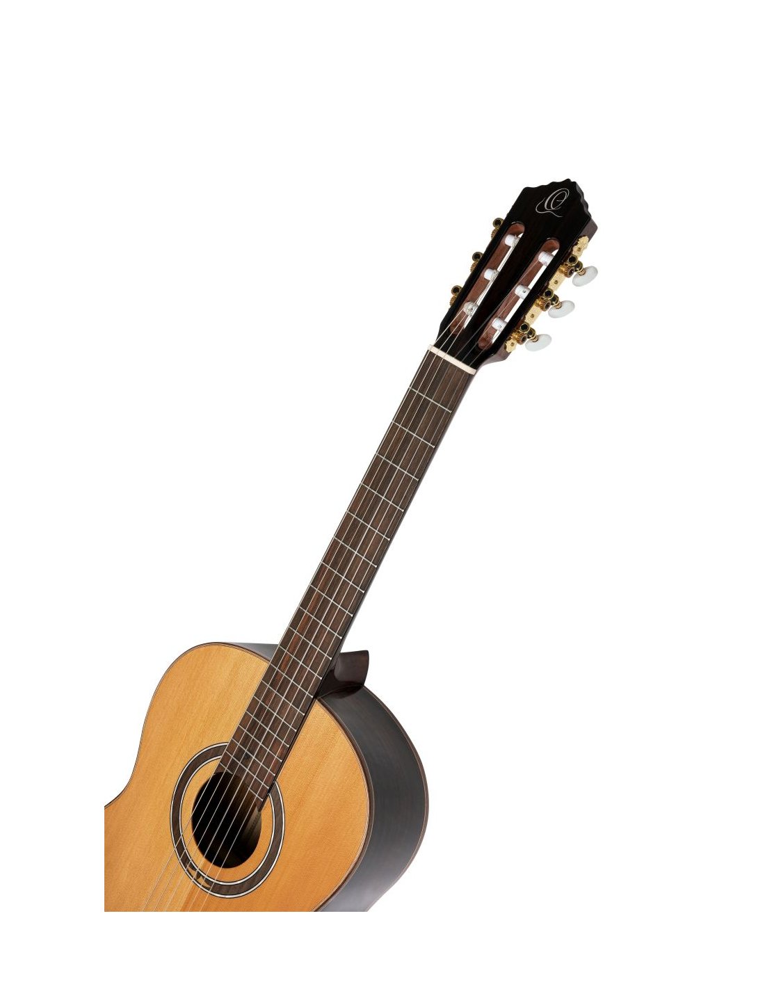'Guitare Classique Pleine Taille Série PerformerNotre collection la plus complète, la série Performer repose sur les caractéristiques de la série Family Pro en incorporant une construction traditionnelle avec des améliorations modernes. Les guitares de la série Performer sont disponibles en configurations pleine caisse et thinline, avec ou sans découpe, et présentent une variété de finitions brillantes, un dessus en bois massif et des manches fins adaptés à tous les musiciens.Table en cèdre massif d'Amérique du Nord, finition brillanteDos et éclisses en noyer, finition brillanteManche en okoumé, finition brillanteTouche et chevalet en PurpleheartChevalet Ortega 12 trousSignature Ortega noyer/érable/rosace en nacre blancheTruss rod à 2 voiesHousse souple incluseÉchelle : 650mm / 25.59''Largeur au sillet : 52mm / 2.05''Ortega2023'