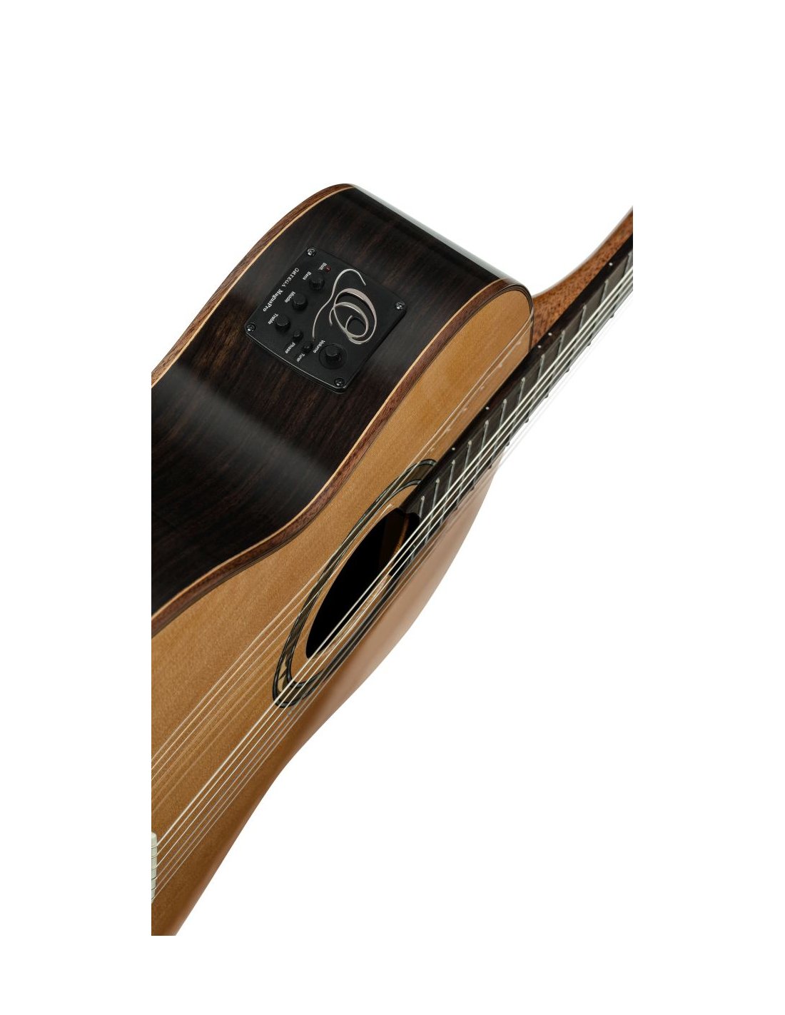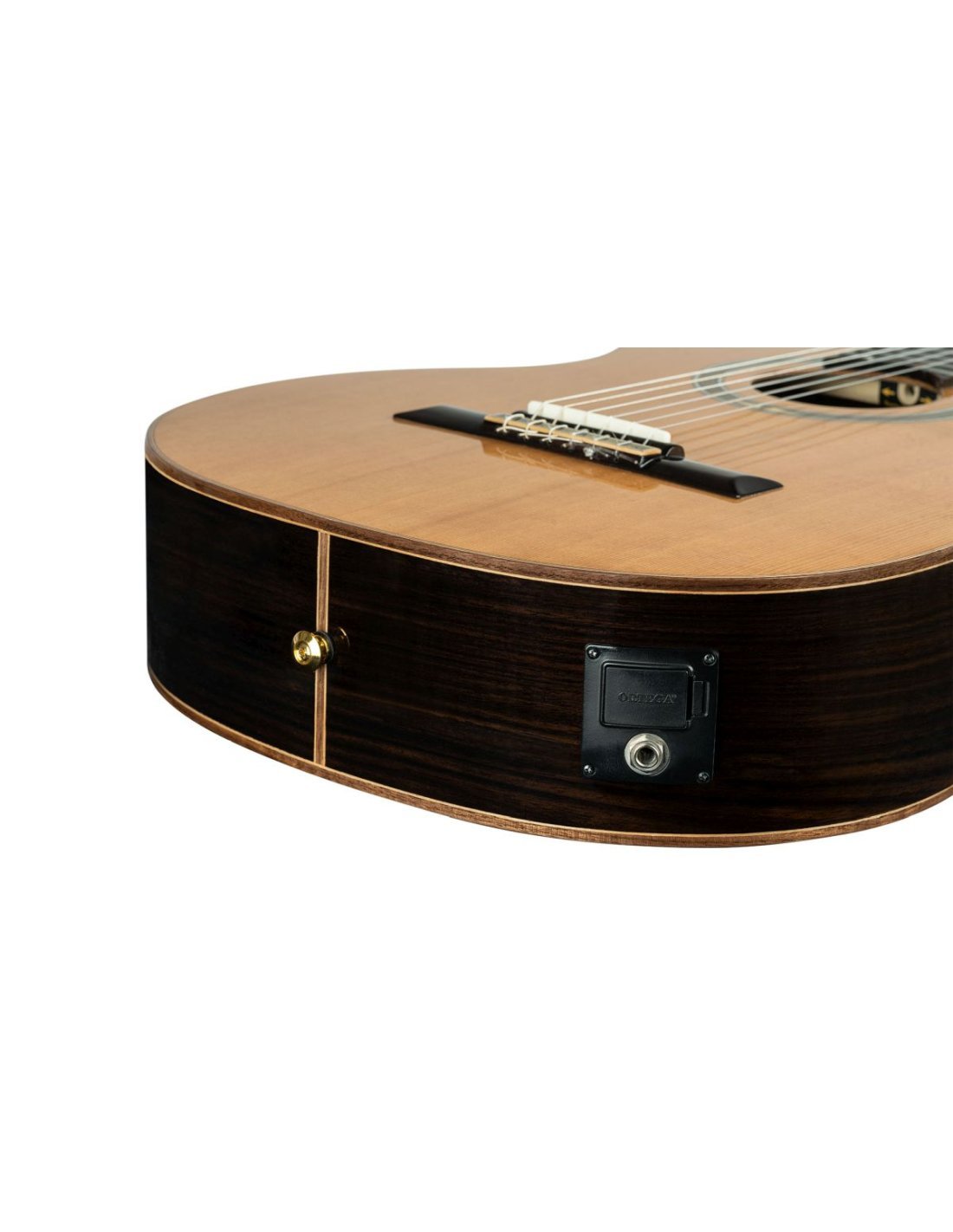 La série Ortega Performer s'enrichit de deux nouveaux modèles avec une table en bois massif d'épicéa européen et en bois massif de cèdre canadien. Ces bois sont réputés pour leur son chaud et expressif, et chacun offre des caractéristiques uniques. La table en épicéa rouge permet une attaque rapide, la rendant adaptée à des styles de jeu rapides, tandis que la table en cèdre offre un accent plus doux, idéal pour mettre en valeur un jeu délicat et riche en nuances. Le fond et les éclisses sont réalisés en palissandre indonésien, qui non seulement exalte le charme visuel de la guitare, mais produit également un son plein et équilibré. Les guitares de la série Performer sont l'association parfaite pour les musiciens à la recherche d'une qualité sonore exceptionnelle et d'une élégance esthétique. Pour répondre aux besoins des musiciens qui se produisent sur scène, elles sont également dotées de notre électronique intégrée avec accordeur et d'une housse de haute qualité. Taille : 4/4. Largeur du sillet : 48 mm (1,89 pouce). Échelle : 650 mm (25,59 pouces). Dessus : Cèdre canadien massif, finition brillante. Dos et éclisses : Palissandre indonésien, finition brillante. Rembourrage : Noyer. Rosette : Ortega signature. Manche : style fin, finition brillante. Largeur du sillet : 48 mm. Touche et chevalet : palissandre indonésien (plat), palissandre indonésien. Électronique : Ortega MagusPro/G avec accordeur. Dimensions et échelle : 4/4, 650 mm. Inclus : Ortega Pro Gig BagORTEGA2024